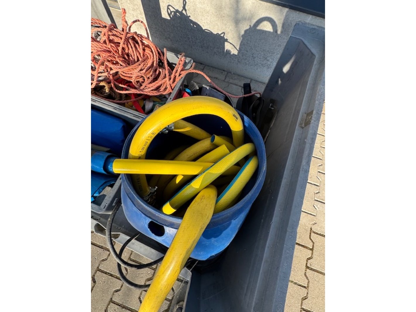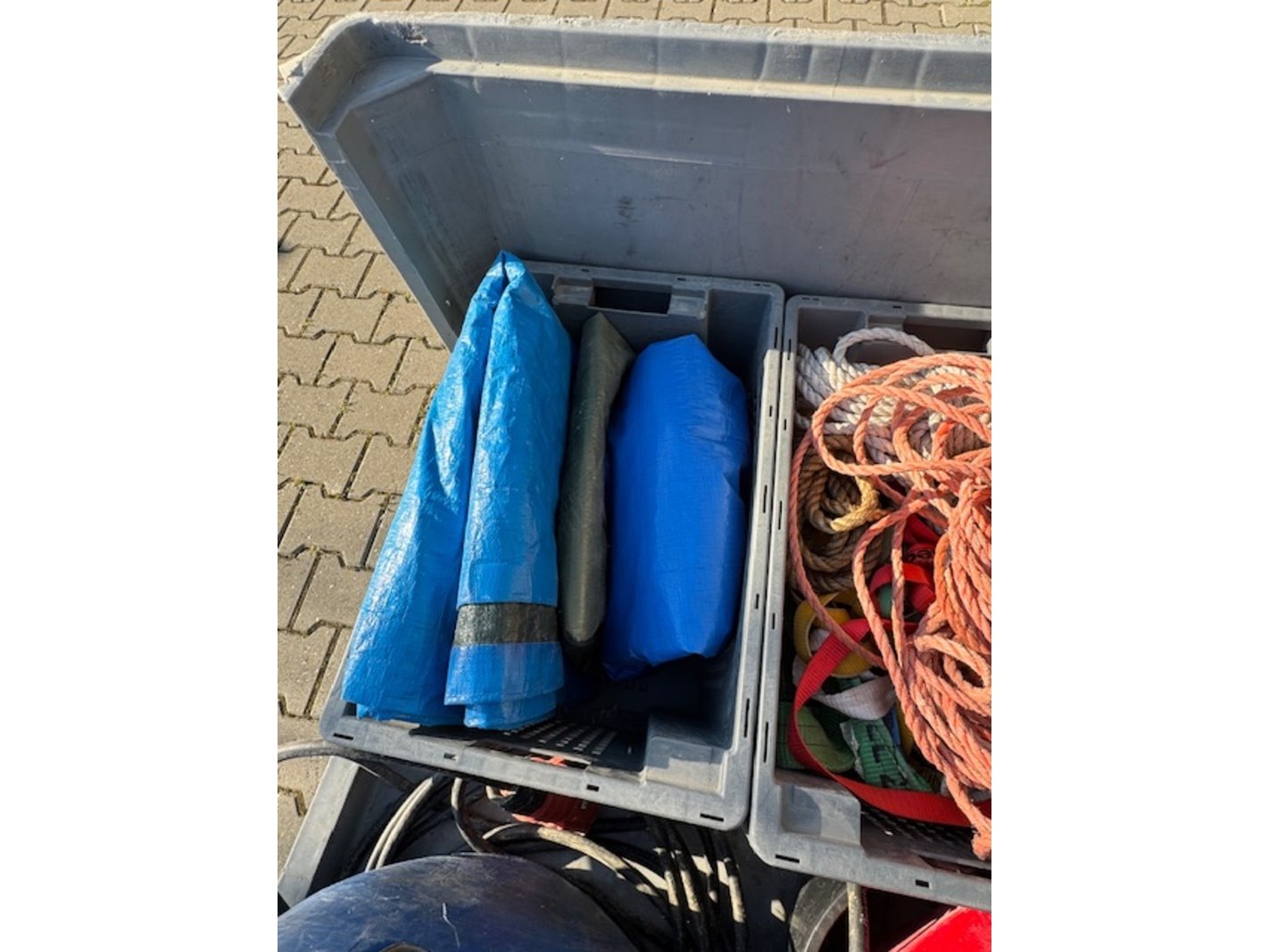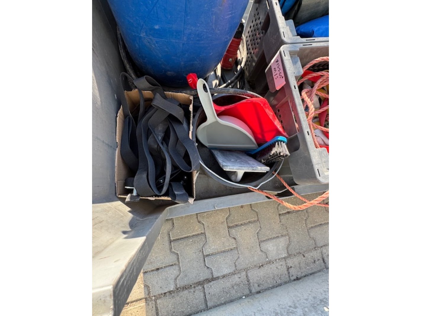 Product: Palletbox met diversen Specificaties: o.a.: krat met dekzeilen, krat met touw, krat met waterslangen