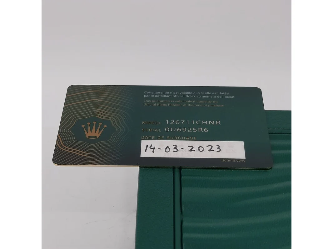 Merk: Rolex Product: Heren polshorloge Conditie: gebruikt Specificaties: Een staal met roségouden heren polshorloge, Rolex GMT Master II 126711CHNR. Met zwarte wijzerplaat, bruin / zwart lunet en aan staal met roségouden band. Inclusief doos, certificaat en 2x reserveschakel. Documentatie van 14-3-2023.