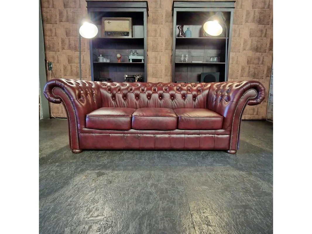 Merk: Chesterfield Product: 3- zits bank Kleur: rood Materiaal: leer Afmeting: 78x220x90 Conditie: nieuw Specificaties: Afmetingen: Breedte: 220 cm Hoogte: 78 cm Diepte: 90 cm Zitdiepte: 54 cm
