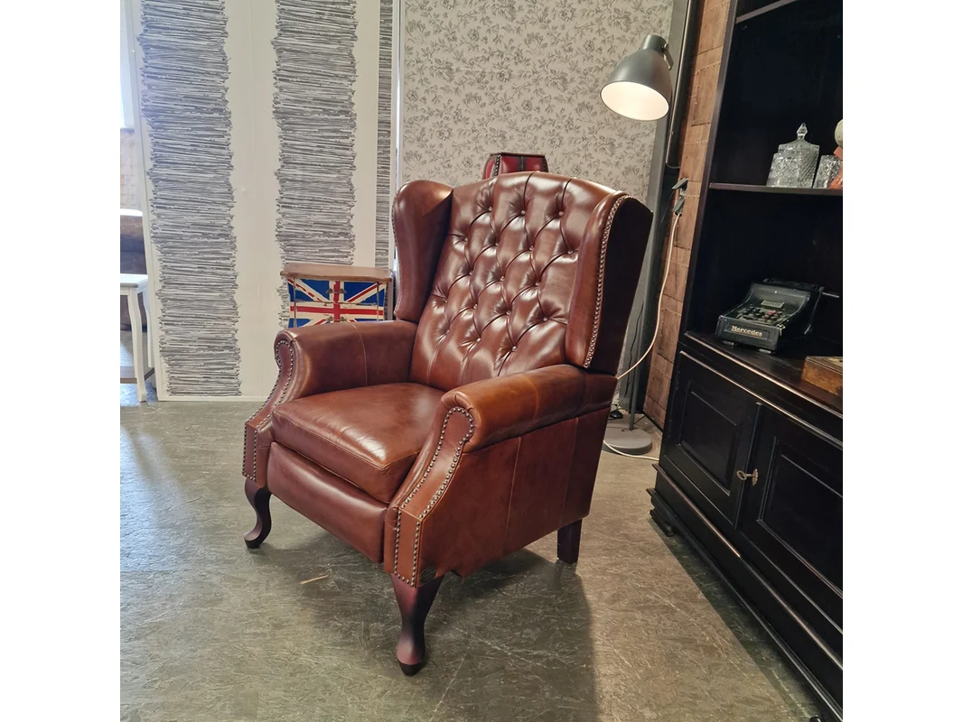 Merk: Chesterfield Product: Relaxfauteuil Kleur: cognac Materiaal: leer Afmeting: 111x82x95 Conditie: nieuw Specificaties: Afmetingen: Hoogte: 111 cm Breedte: 82 cm Diepte: 95 cm Zithoogte: 53 cm Zitdiepte: 52 cm