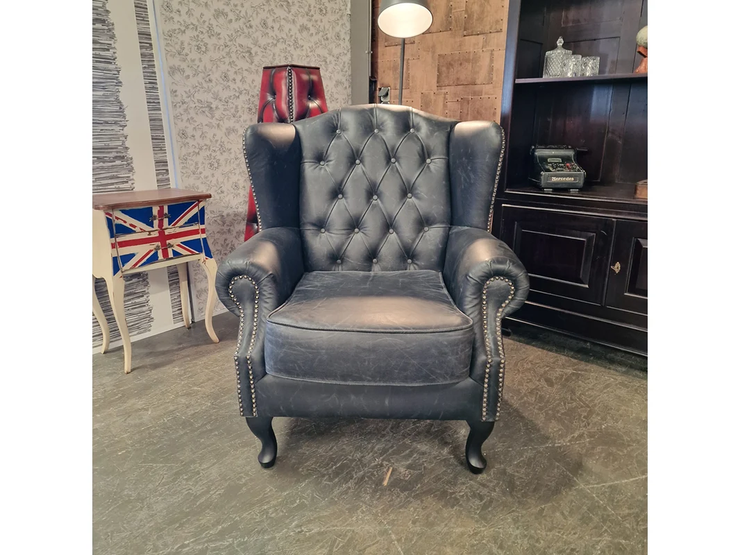 Merk: Chesterfield Product: Fauteuil Kleur: grijs Materiaal: leer Afmeting: 107x85x90 Conditie: nieuw Specificaties: Afmetingen: Breedte: 85 cm Hoogte: 107 cm Diepte: 90 cm Zithoogte: 47 cm Zitdiepte: 56 cm Zithoogte (met kussen en capitonnering): 43 cm Poothoogte: 20 cm