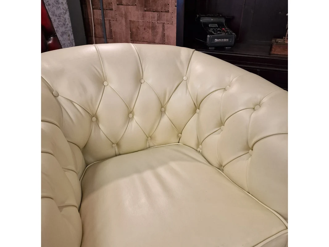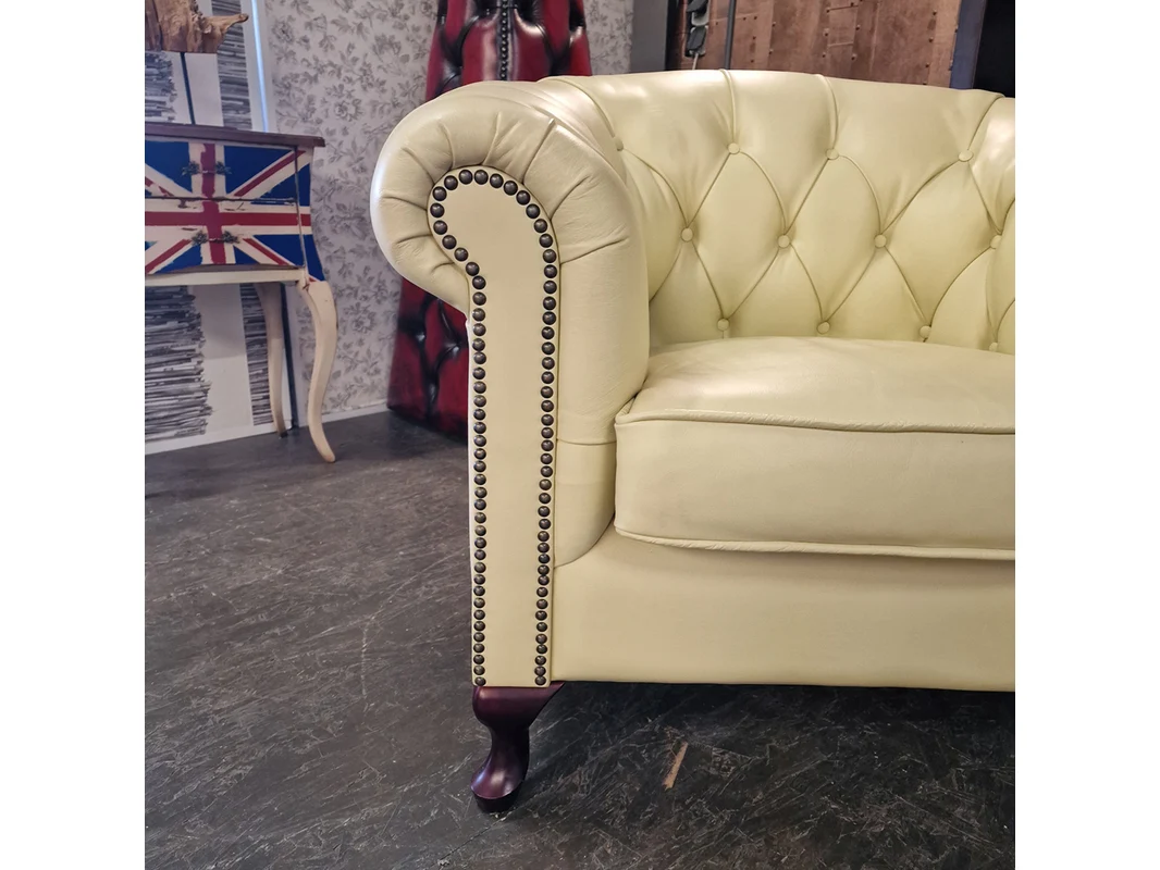 Merk: Chesterfield Product: Fauteuil Kleur: creme Materiaal: leer Afmeting: 78x78x78 Conditie: nieuw Specificaties: Afmetingen: Breedte: 78 cm Hoogte: 78 cm Diepte: 78 cm Zithoogte: 49 cm Zitdiepte: 51 cm Poothoogte: 24.5 cm