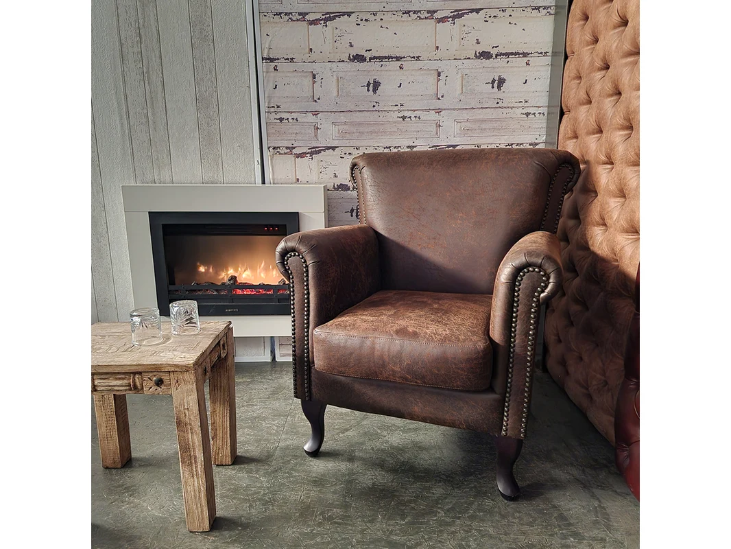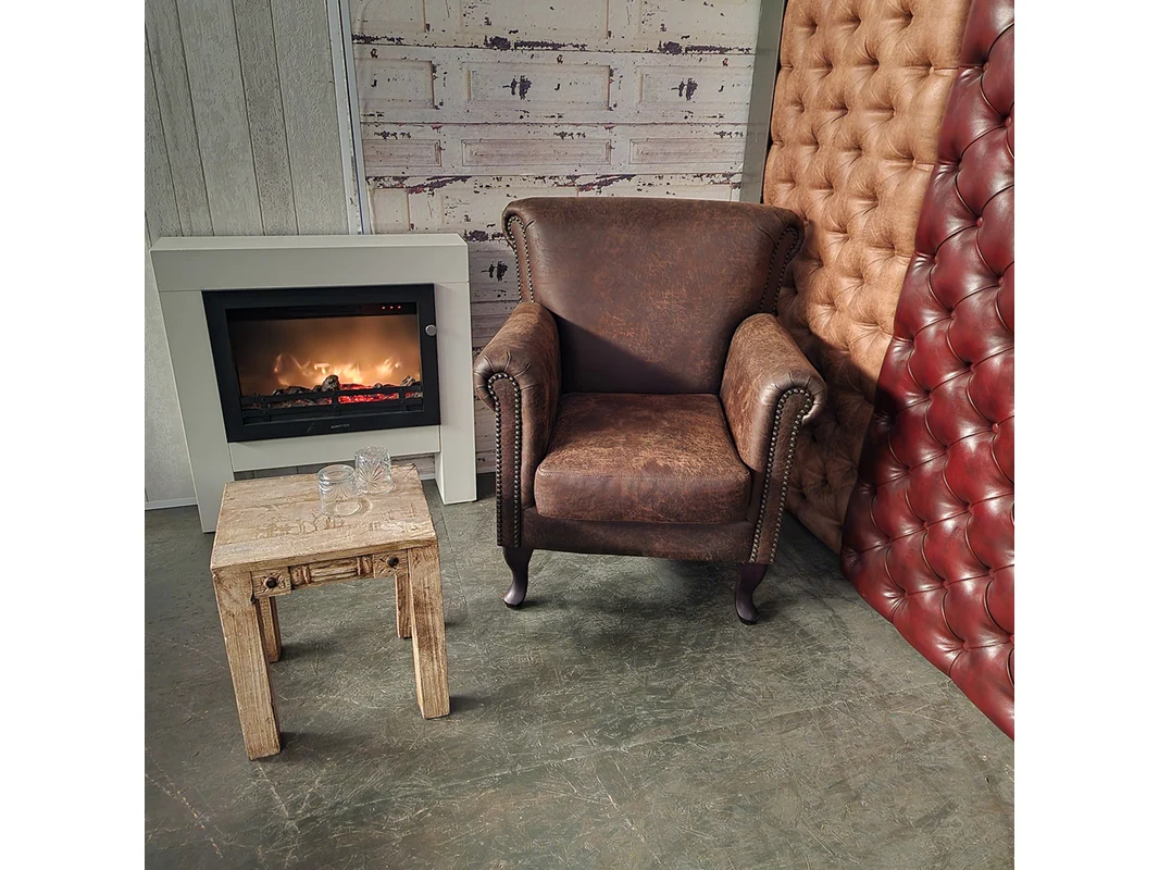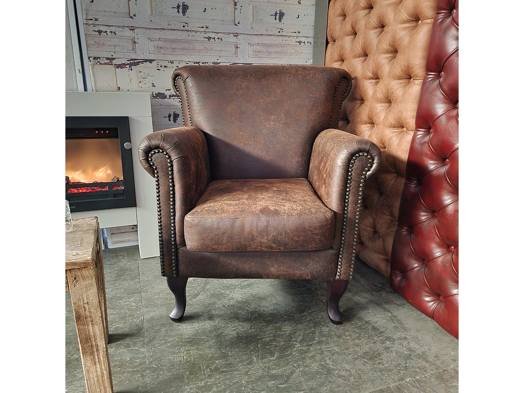 Merk: Chesterfield Product: Fauteuil Kleur: bruin Materiaal: leer Afmeting: 96x90x75 Conditie: nieuw Specificaties: Afmetingen: Breedte: 90 cm Hoogte: 96 cm Diepte: 75 cm Zithoogte: 47 cm Zitdiepte: 54 cm Poothoogte: 20 cm