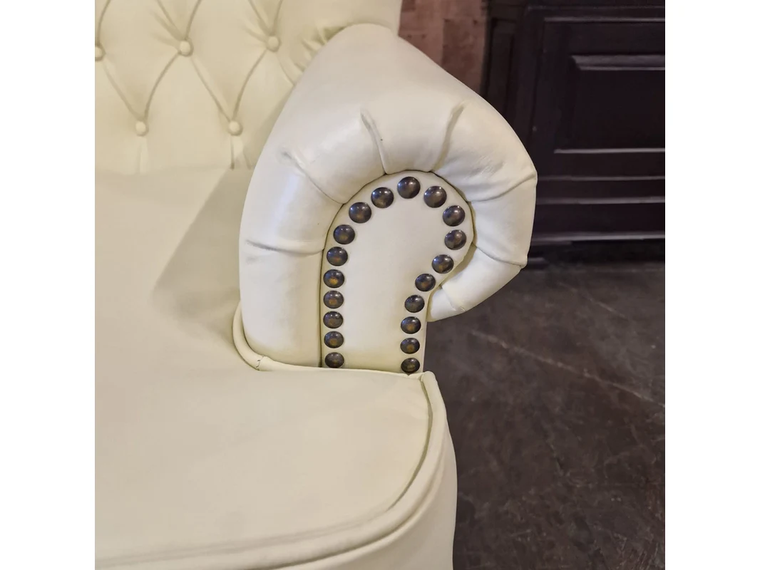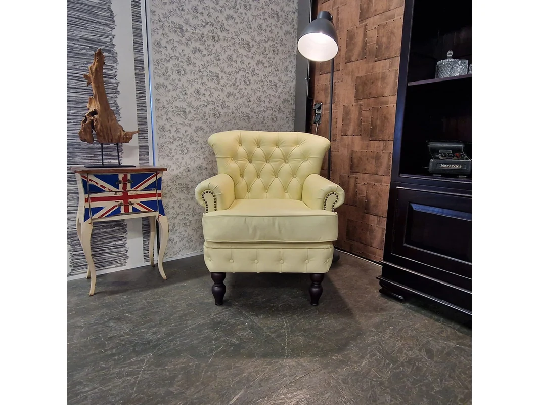 Merk: Chesterfield Product: Fauteuil Kleur: creme Materiaal: leer Afmeting: 96x90x75 Conditie: nieuw Specificaties: Afmetingen: Breedte: 90 cm Hoogte: 96 cm Diepte: 75 cm Zithoogte: 47 cm Zitdiepte: 54 cm Poothoogte: 20 cm