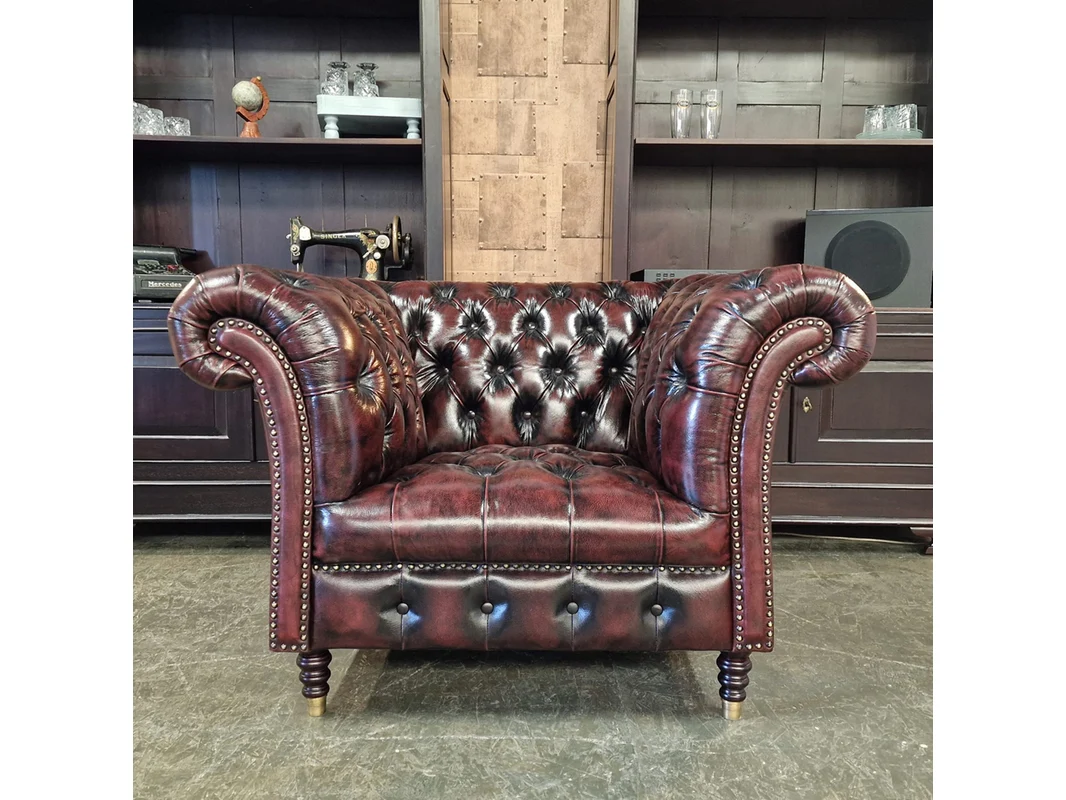 Merk: Chesterfield Product: Fauteuil Kleur: rood Materiaal: leer Afmeting: 83x118x93 Conditie: nieuw Specificaties: Afmetingen: Breedte: 118 cm Hoogte: 83 cm Diepte: 93 cm Zithoogte: 46 cm