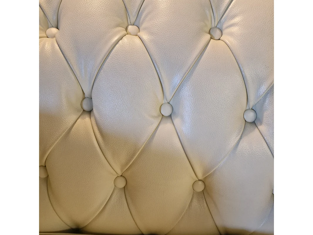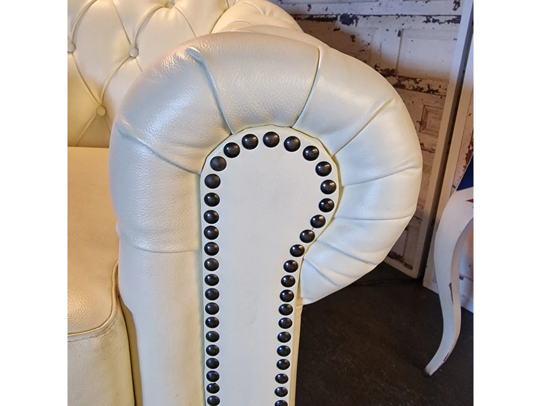 Merk: Chesterfield Product: 1+1 zits Kleur: creme Materiaal: leer Afmeting: 79x95x92 Conditie: nieuw Specificaties: Afmetingen: Breedte: 200 cm Hoogte: 79 cm Diepte: 92 cm Zithoogte: 50 cm Zitdiepte: 56 cm Poothoogte: 8.5 cm