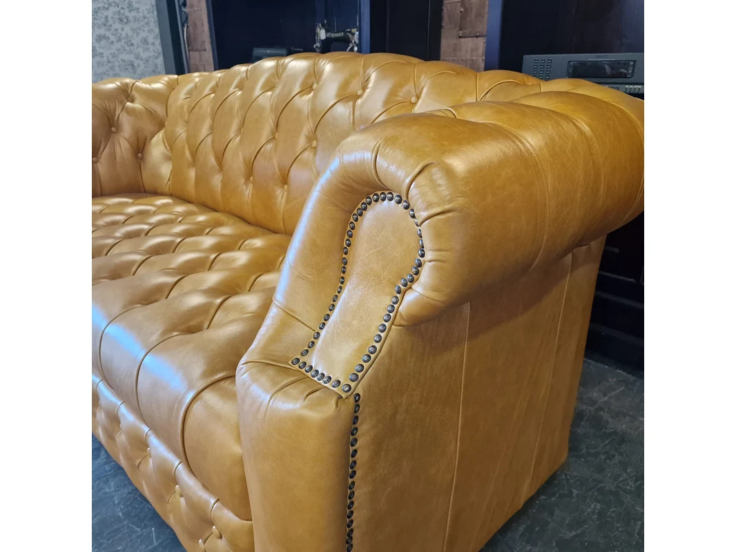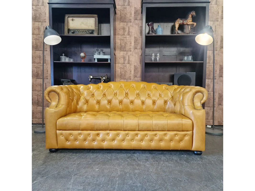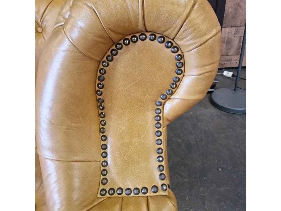 Merk: Chesterfield Product: 3-zits bank Kleur: geel/bruin Materiaal: leer Afmeting: 76x180x90 Conditie: nieuw Specificaties: Afmetingen: Breedte: 180 cm Hoogte: 76 cm Diepte: 90 cm