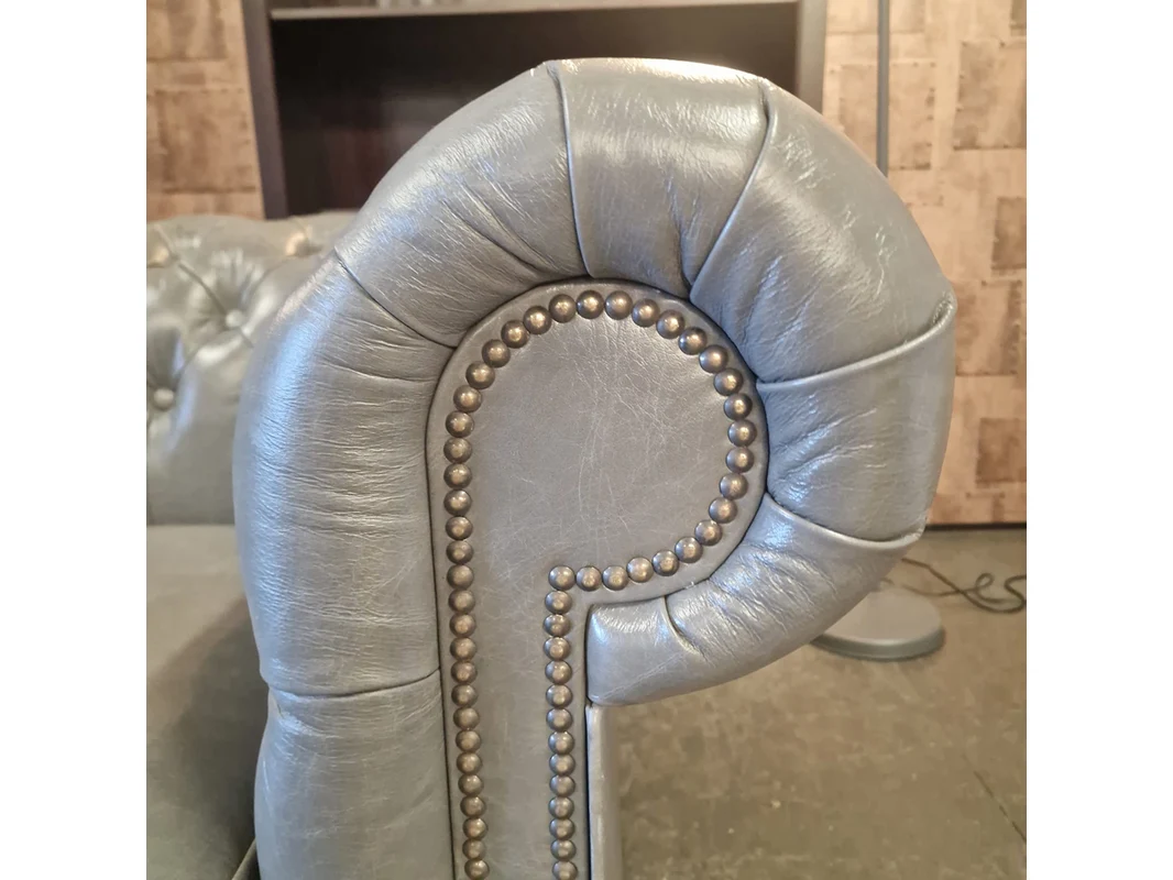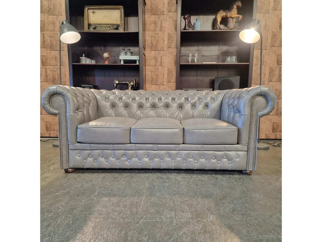 Merk: Chesterfield Product: 3-zits bank Kleur: grijs Materiaal: leer Afmeting: 80x200x90 Conditie: nieuw Specificaties: Afmetingen: Breedte: 200 cm Hoogte: 80 cm Diepte: 90 cm Zitdiepte: 54 cm