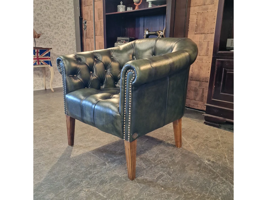 Merk: Chesterfield Product: Fauteuil Kleur: groen Materiaal: leer Afmeting: 78x78x78 Conditie: nieuw Specificaties: Afmetingen: Breedte: 78 cm Hoogte: 78 cm Diepte: 78 cm Zithoogte: 44 cm Zitdiepte: 51 cm