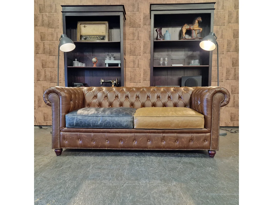 Merk: Chesterfield Product: 3- zits bank Kleur: meerkleurig Materiaal: leer Afmeting: 79x200x92 Conditie: nieuw Specificaties: Afmetingen: Breedte: 200 cm Hoogte: 79 cm Diepte: 92 cm Zithoogte: 50 cm Zitdiepte: 56 cm