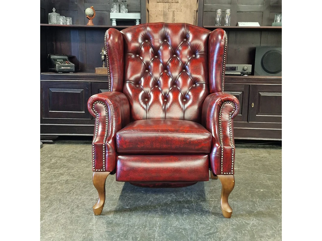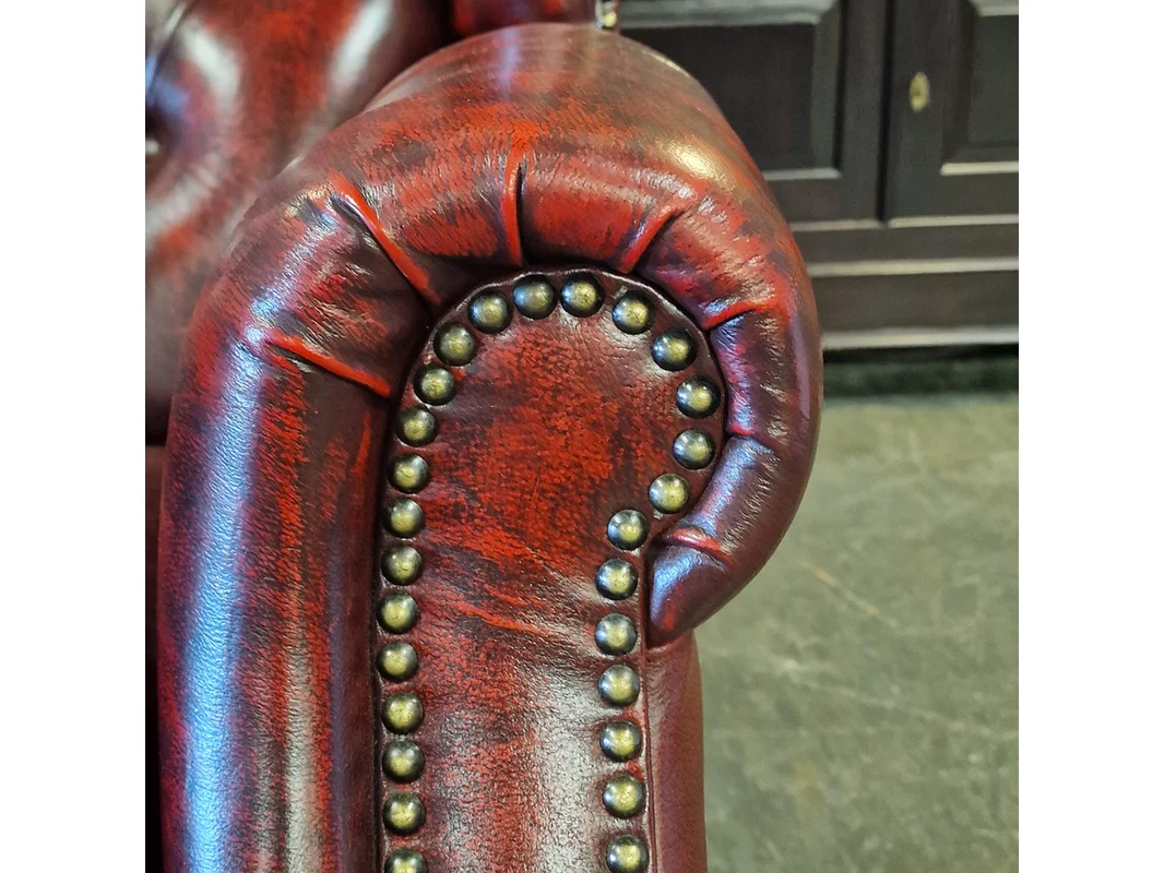 Merk: Chesterfield Product: Fauteuil Kleur: rood Materiaal: leer Afmeting: 82x111x95 Conditie: nieuw Specificaties: Afmetingen: Breedte: 111 cm Hoogte: 82 cm Diepte: 95 cm Zithoogte: 53 cm Zitdiepte: 52 cm