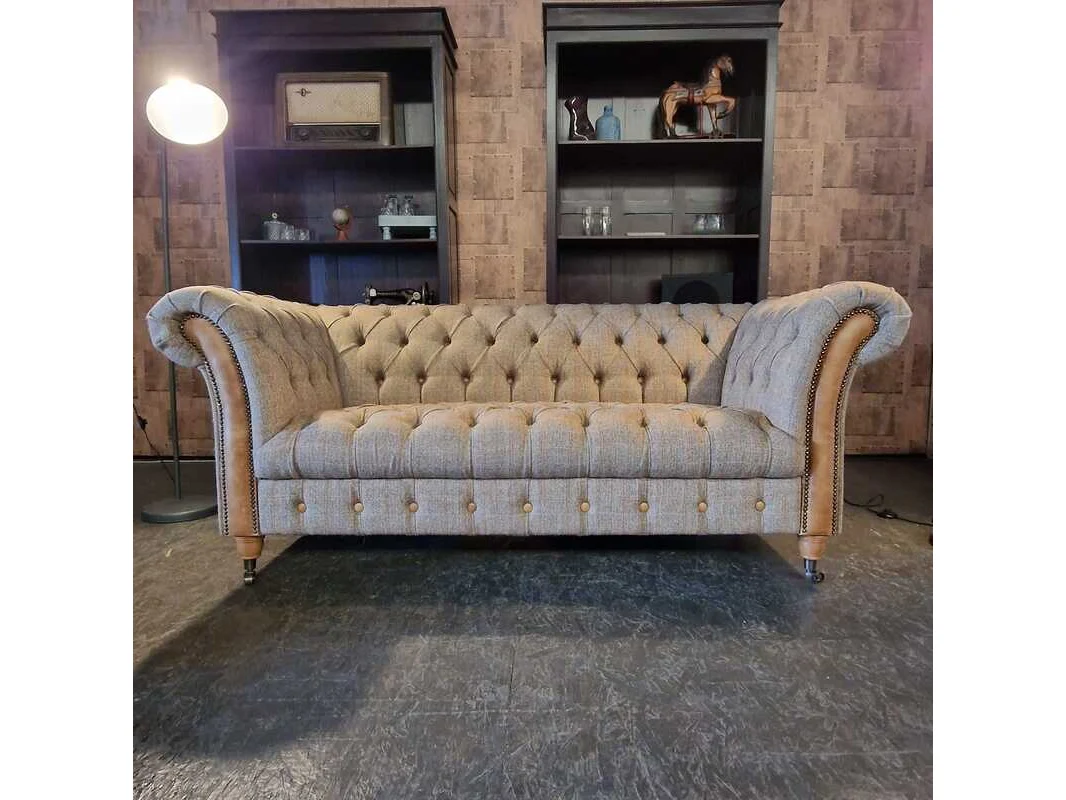 Merk: Chesterfield Product: 2-zits bank Kleur: beige Materiaal: stof Afmeting: 85x200x95 Conditie: nieuw Specificaties: Afmetingen: Breedte: 85 cm Hoogte: 85 cm Diepte: 95 cm