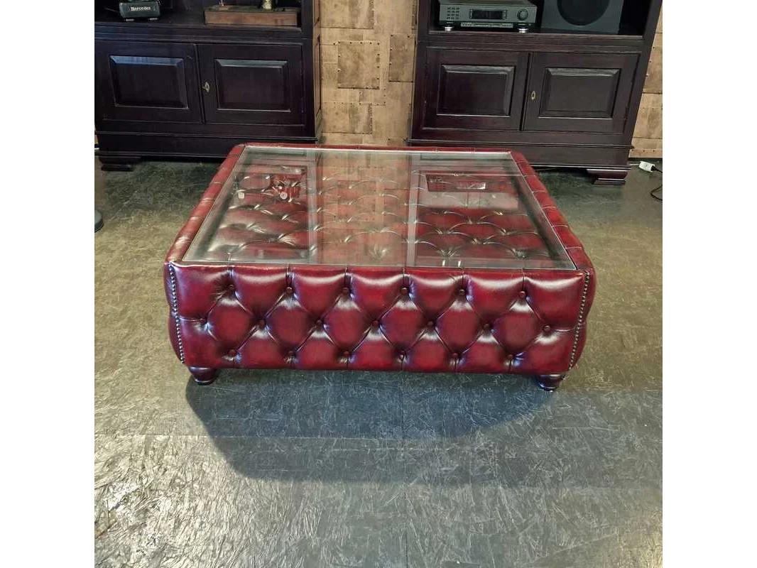 Merk: Chesterfield Product: Salontafel Kleur: rood Materiaal: leer Afmeting: 40x110x100 Conditie: nieuw Specificaties: Afmetingen: Breedte: 110 cm Hoogte: 40 cm Diepte: 110 cm
