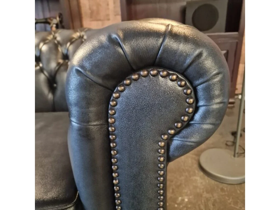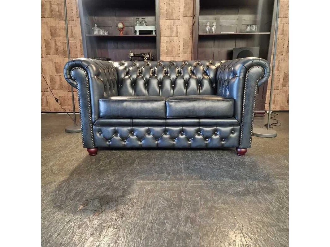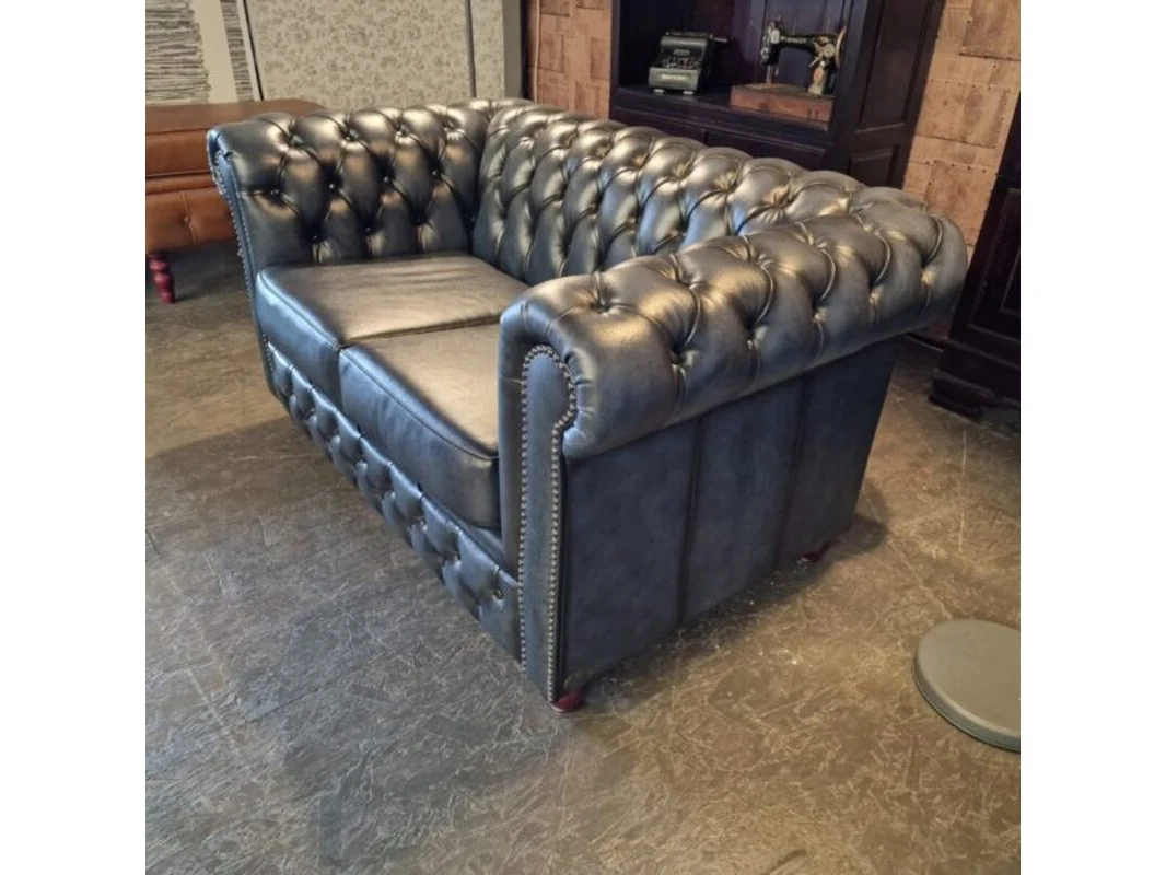 Merk: Chesterfield Product: 2-zits bank Kleur: blauw Materiaal: leer Afmeting: 79x150x92 Conditie: nieuw Specificaties: Afmetingen: Breedte: 150 cm Hoogte: 79 cm Diepte: 92 cm Zithoogte: 50 cm Zitdiepte: 56 cm