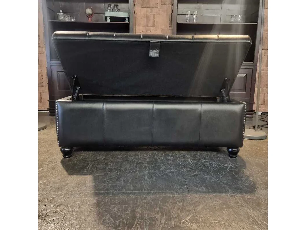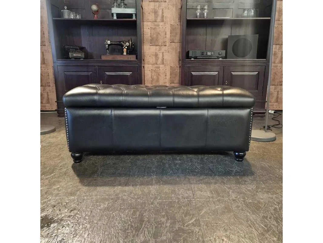 Merk: Chesterfield Product: Hocker Kleur: zwart Materiaal: leer Afmeting: 45x120x55 Conditie: nieuw Specificaties: Afmetingen: Breedte: 120 cm Hoogte: 45 cm Diepte: 55 cm