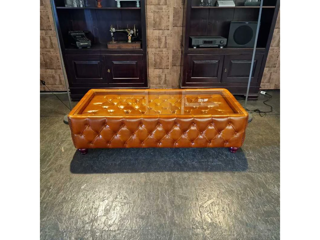 Merk: Chesterfield Product: Salontafel Kleur: bruin Materiaal: leer Afmeting: 40x70x150 Conditie: nieuw Specificaties: Afmetingen: Breedte: 70 cm Hoogte: 40 cm Diepte: 150 cm