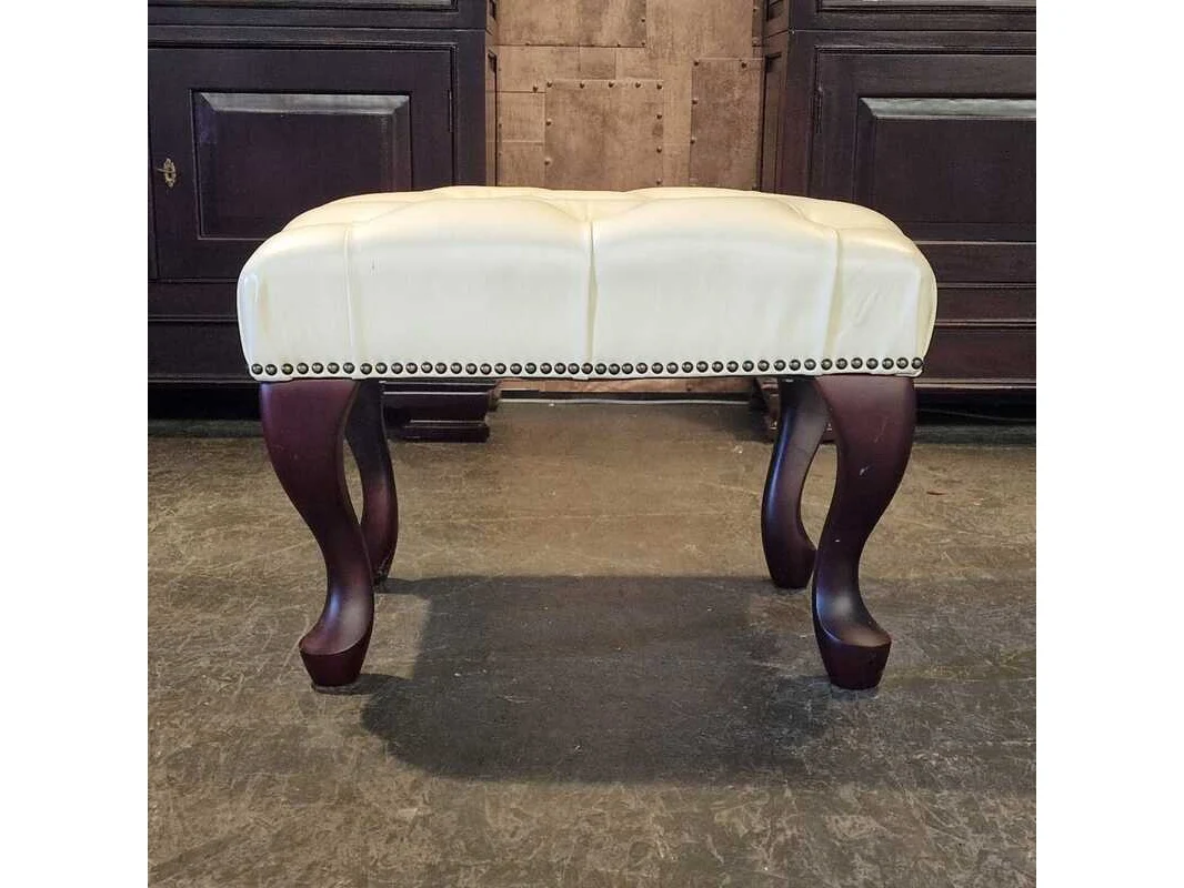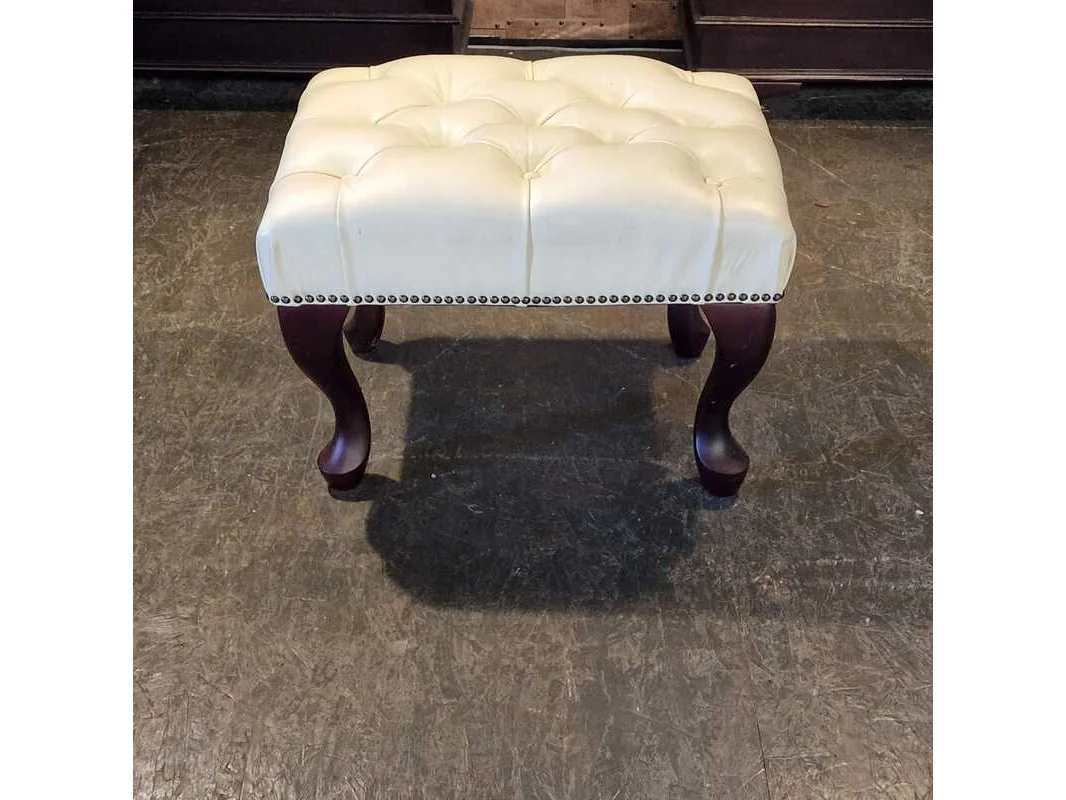 Merk: Chesterfield Product: Hocker Kleur: creme Materiaal: leer Afmeting: 44x63x47 Conditie: nieuw Specificaties: Afmetingen: Breedte: 63 cm Hoogte: 44 cm Diepte: 47 cm