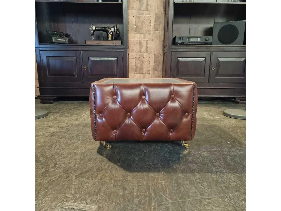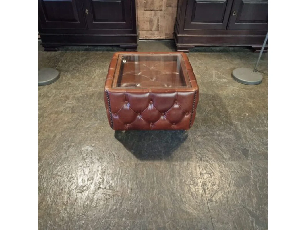 Merk: Chesterfield Product: Salontafel Kleur: bruin Materiaal: leer Afmeting: 40x55x55 Conditie: nieuw Specificaties: Afmetingen: Breedte: 55 cm Hoogte: 40 cm Diepte: 55 cm