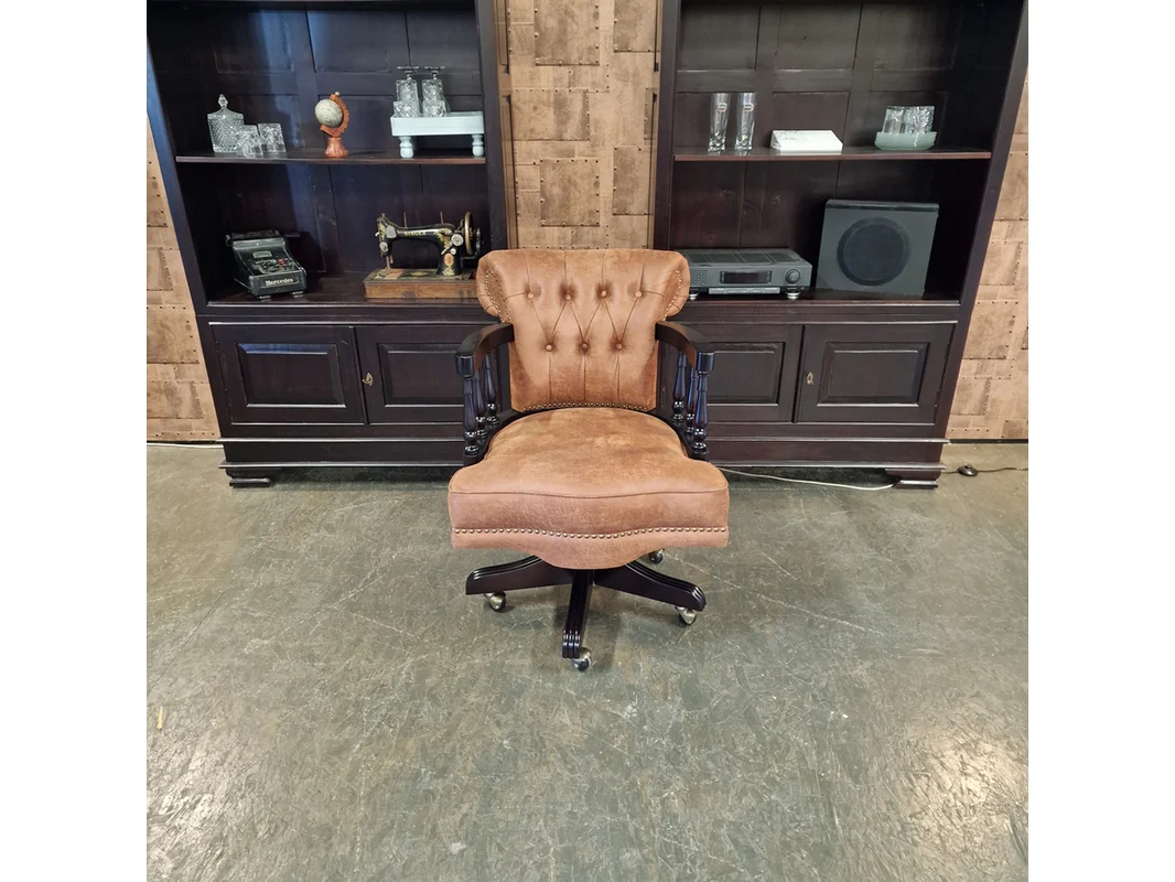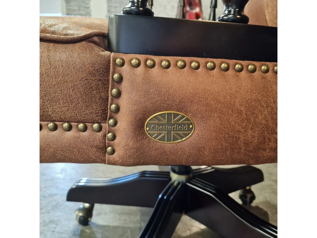 Merk: Chesterfield Product: Bureaustoel Kleur: cognac Materiaal: leer Afmeting: 101x69x92 Conditie: nieuw Specificaties: Afmetingen: Hoogte: 94/101 cm Breedte: 69 cm diepte: 92 cm Zithoogte: 52/59 cm