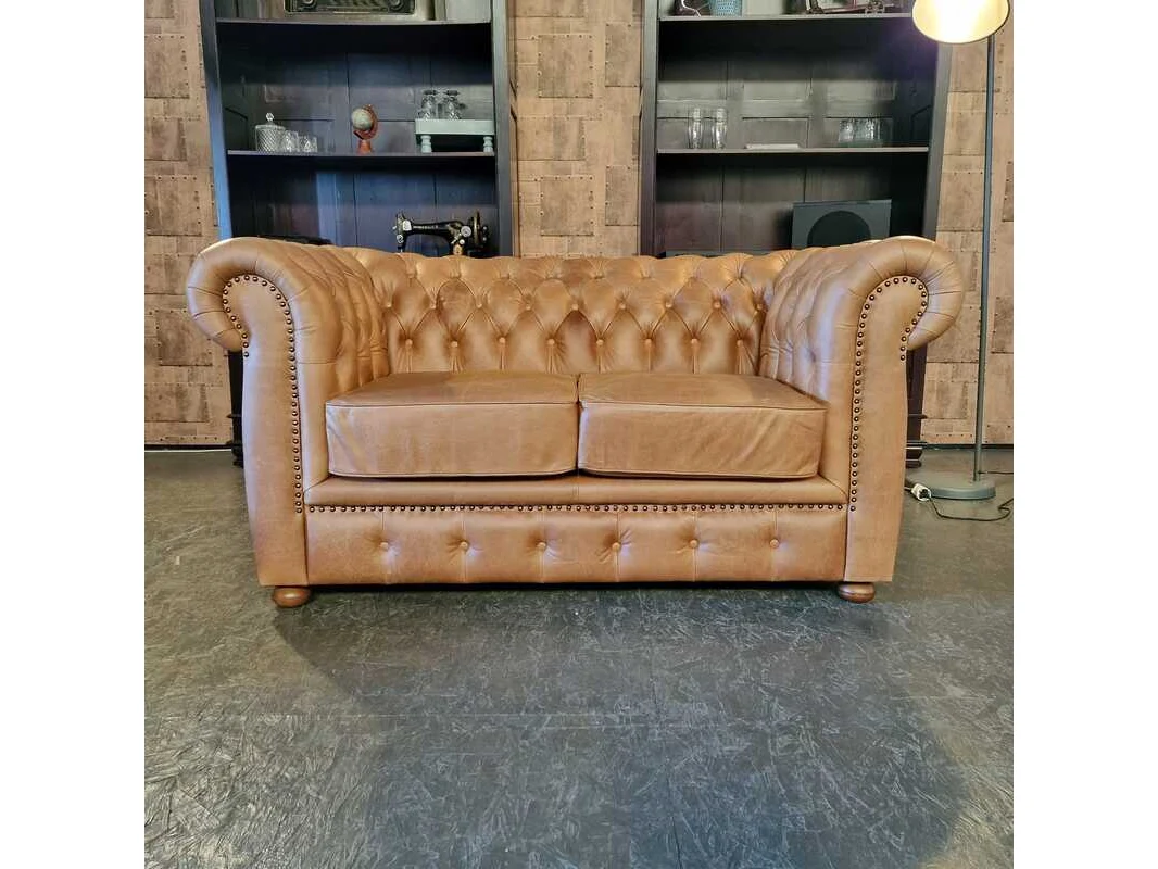 Merk: Chesterfield Product: 2-zits bank Kleur: bruin Materiaal: leer Afmeting: 79x158x93 Conditie: nieuw Specificaties: Afmetingen: Breedte: 158 cm Hoogte: 79 cm Diepte: 93 cm Zithoogte: 49 cm