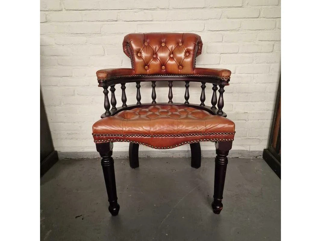 Merk: Chesterfield Product: Eetkamerstoel Kleur: bruin Materiaal: leer Afmeting: 105x55x66 Conditie: nieuw Specificaties: Afmetingen: Breedte: 55 cm Hoogte: 105 cm Diepte: 66 cm Zithoogte: 50 cm Zitdiepte: 49 cm