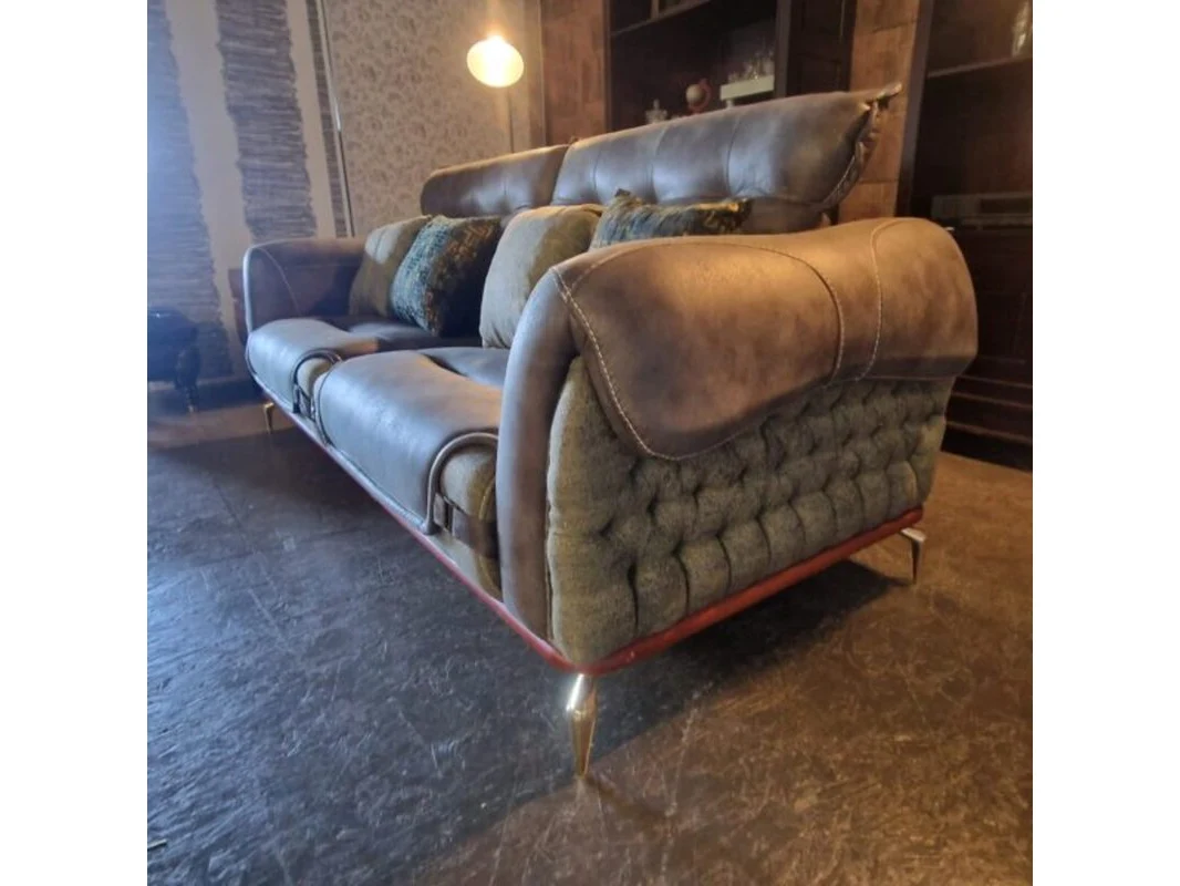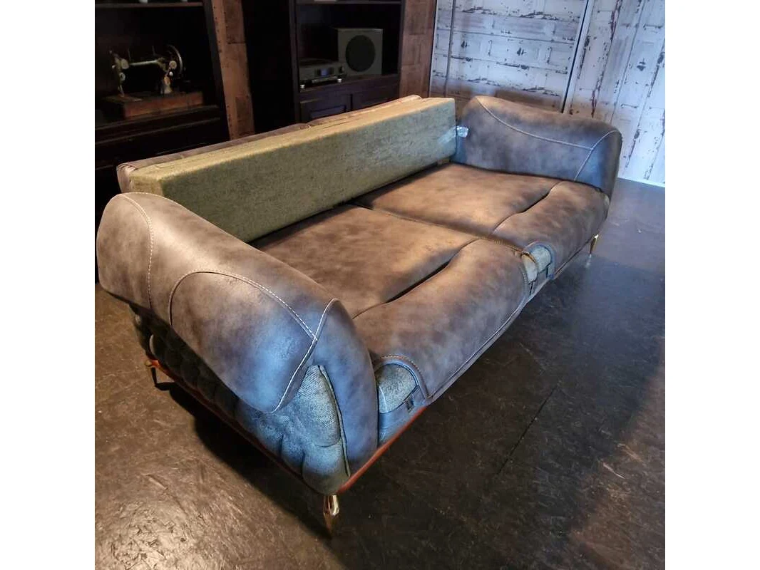 Merk: Chesterfield Product: 3-zits slaapbank Kleur: grijs Materiaal: leer Afmeting: 105x225x105 Conditie: nieuw Specificaties: Afmetingen: Breedte: 225 cm Hoogte: 105 cm Diepte: 105 cm