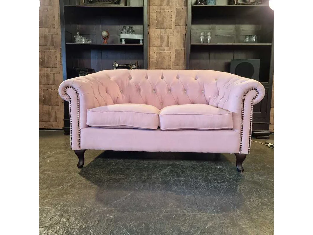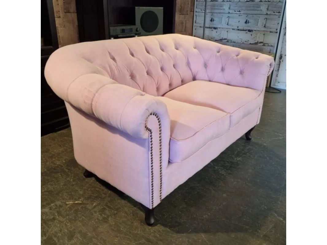 Merk: Chesterfield Product: 2-zitsbank Kleur: roze Materiaal: stof Afmeting: 75x150x93 Conditie: nieuw Specificaties: Afmetingen: Breedte: 150 cm Hoogte: 75 cm Diepte: 93 cm Zithoogte: 47 cm Zitdiepte: 54 cm