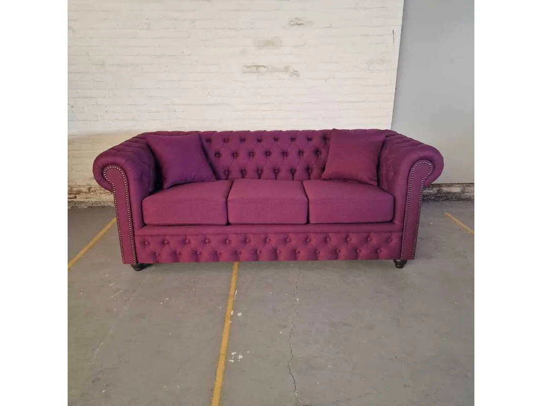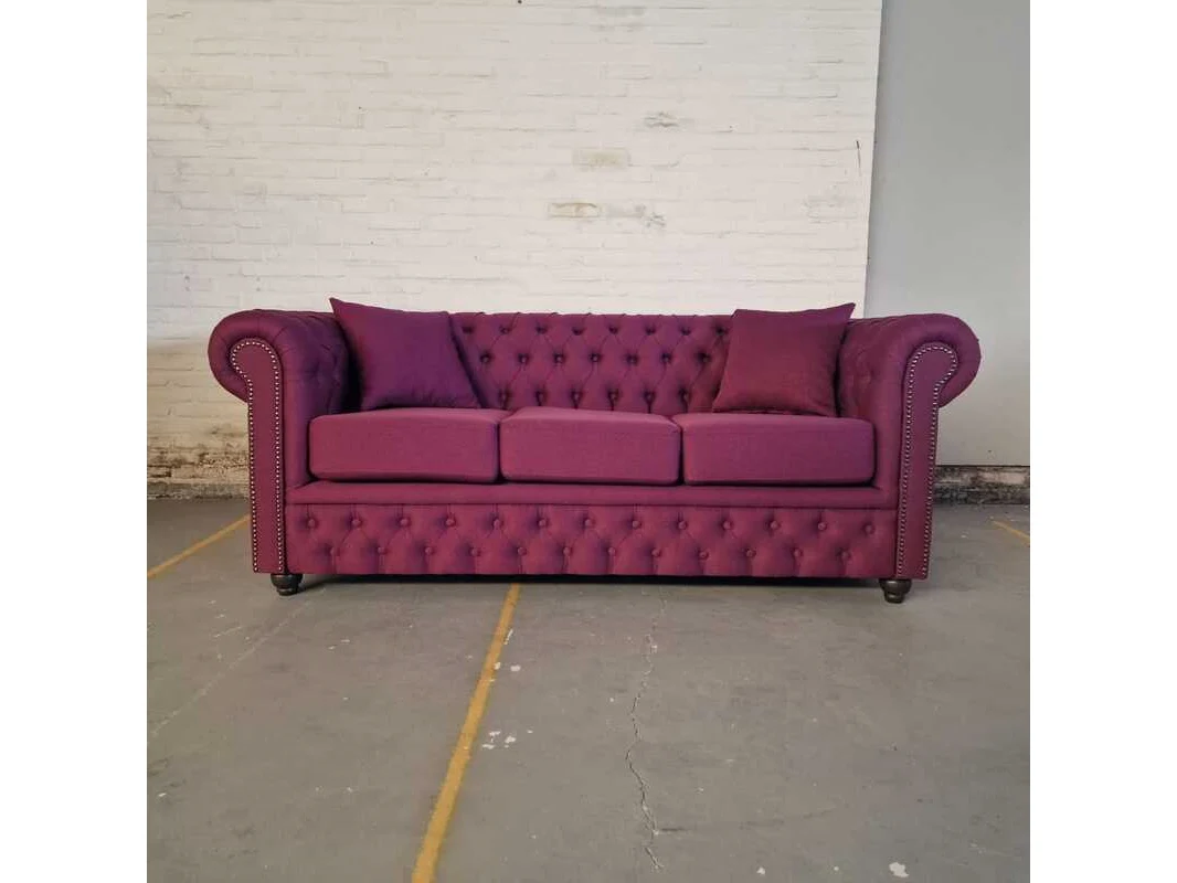 Merk: Chesterfield Product: 3-zitsbank Kleur: roze Materiaal: stof Afmeting: 79x200x92 Conditie: nieuw Specificaties: Afmetingen: Breedte: 200 cm Hoogte: 79 cm Diepte: 92 cm Zithoogte: 50 cm Zitdiepte: 56 cm
