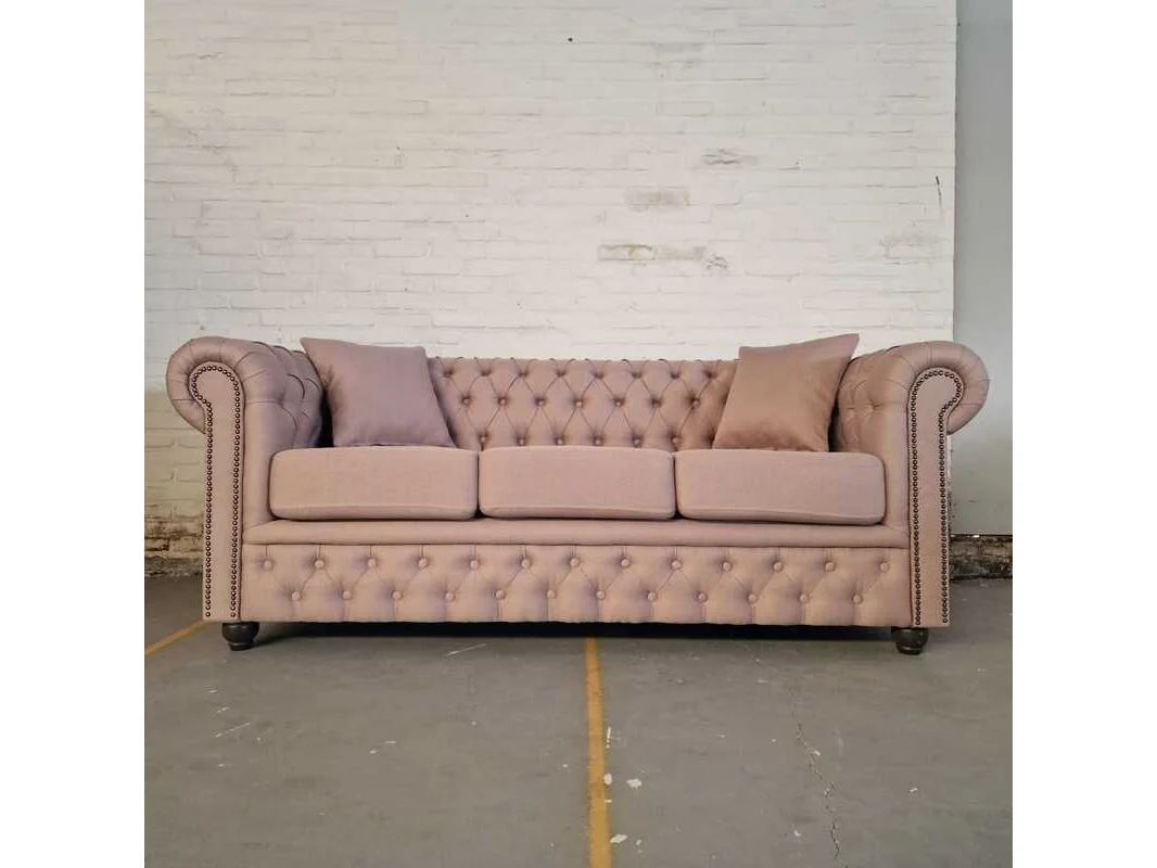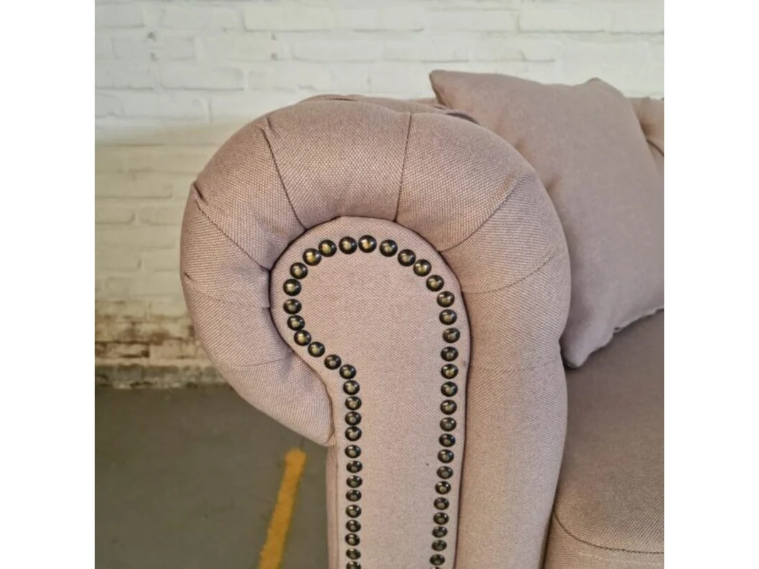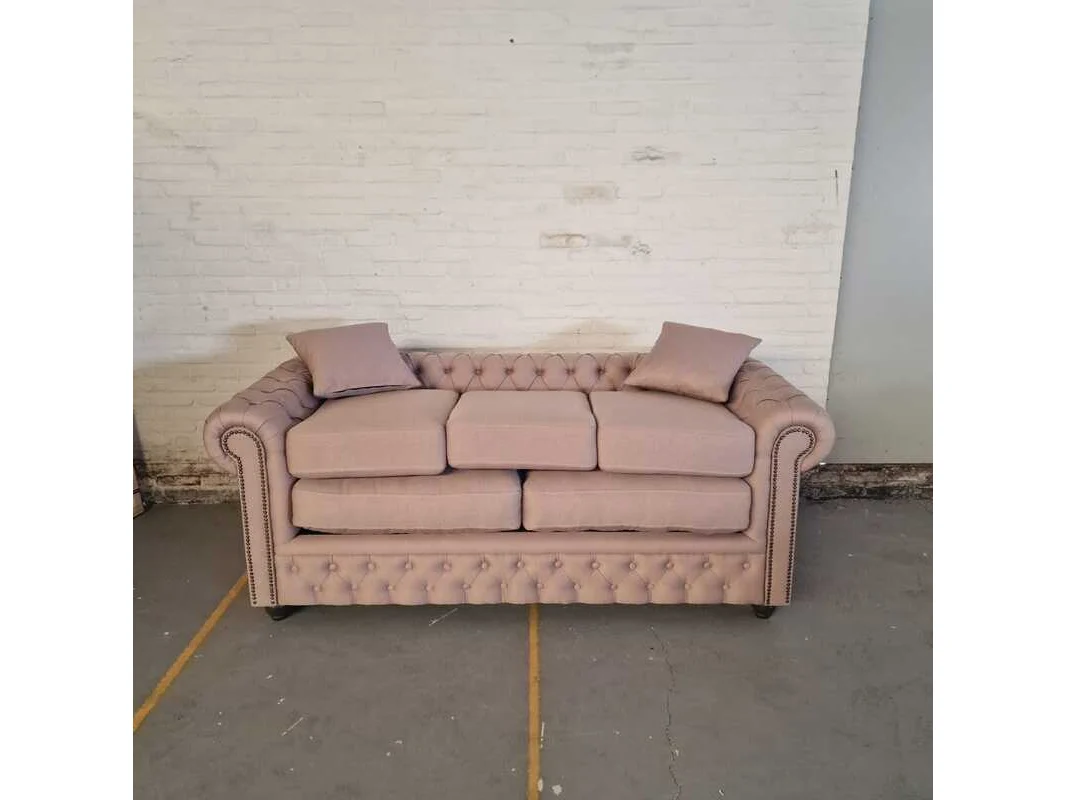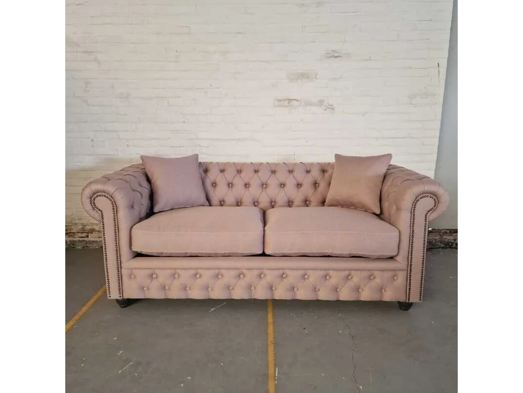 Merk: Chesterfield Product: 3-zitsbank Kleur: roze Materiaal: stof Afmeting: 79x200x92 Conditie: nieuw Specificaties: Afmetingen: Breedte: 200 cm Hoogte: 79 cm Diepte: 92 cm Zithoogte: 50 cm Zitdiepte: 56 cm