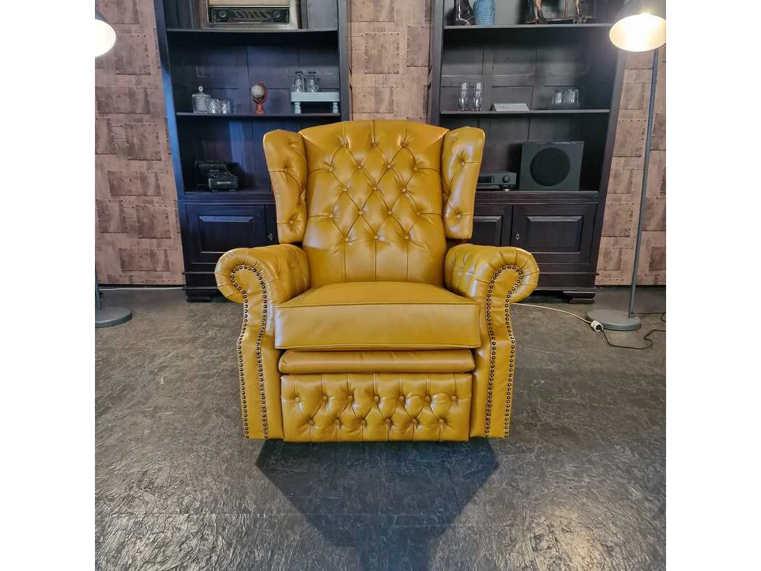 Merk: Chesterfield Product: Relaxfauteuil Kleur: geel Materiaal: leer Afmeting: 107x100x100 Conditie: nieuw Specificaties: Afmetingen: Breedte: 100 cm Hoogte: 107 cm Diepte: 100 cm