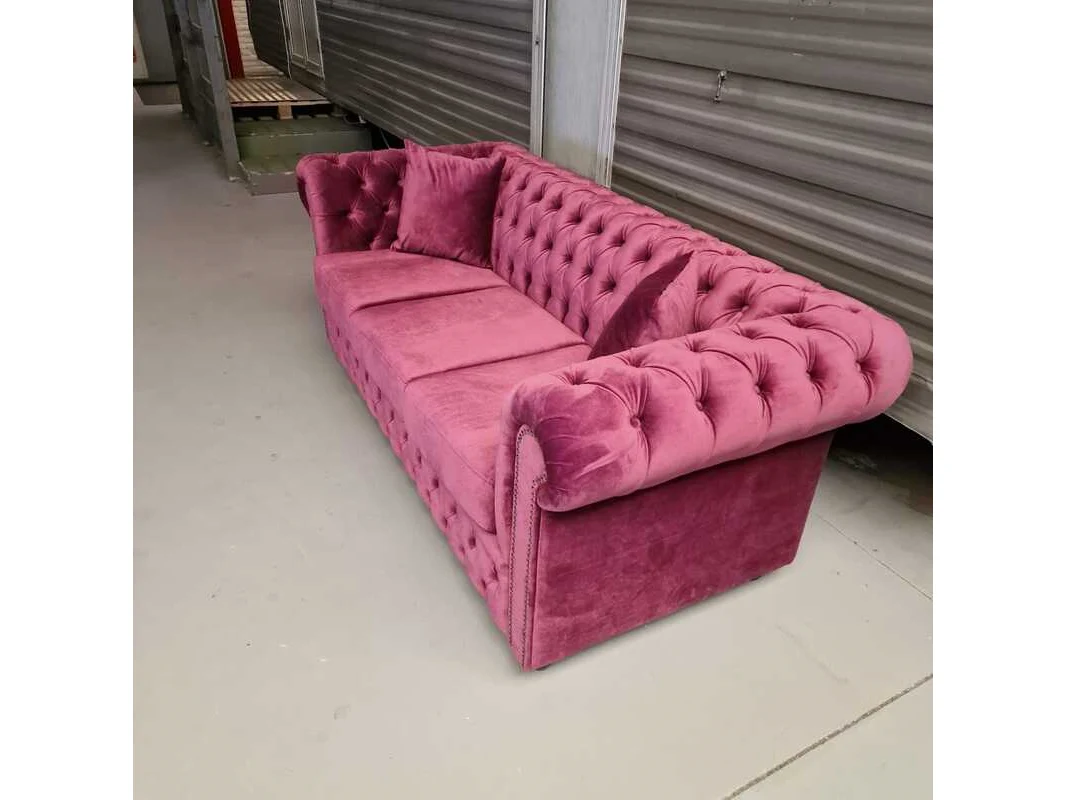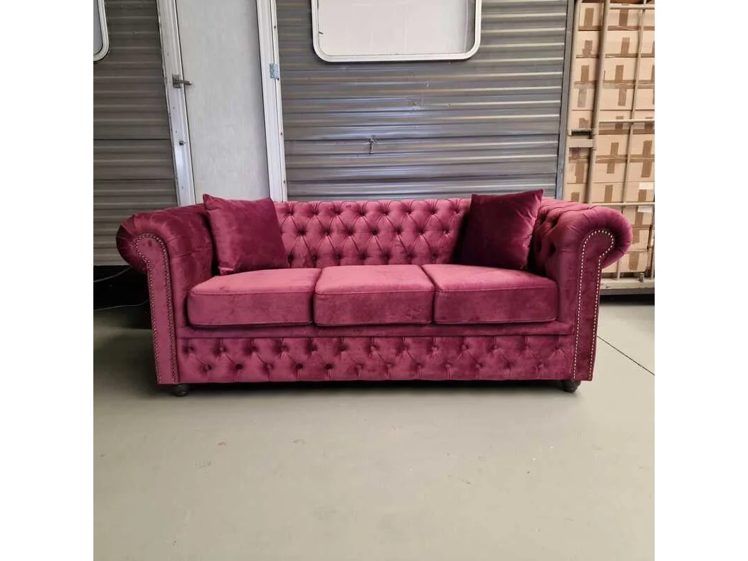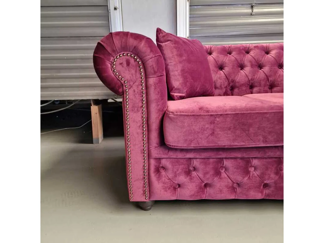 Merk: Chesterfield Product: 3-zitsbank Kleur: paars Materiaal: stof Afmeting: 79x200x92 Conditie: nieuw Specificaties: Afmetingen: Breedte: 200 cm Hoogte: 79 cm Diepte: 92 cm Zithoogte: 50 cm Zitdiepte: 56 cm