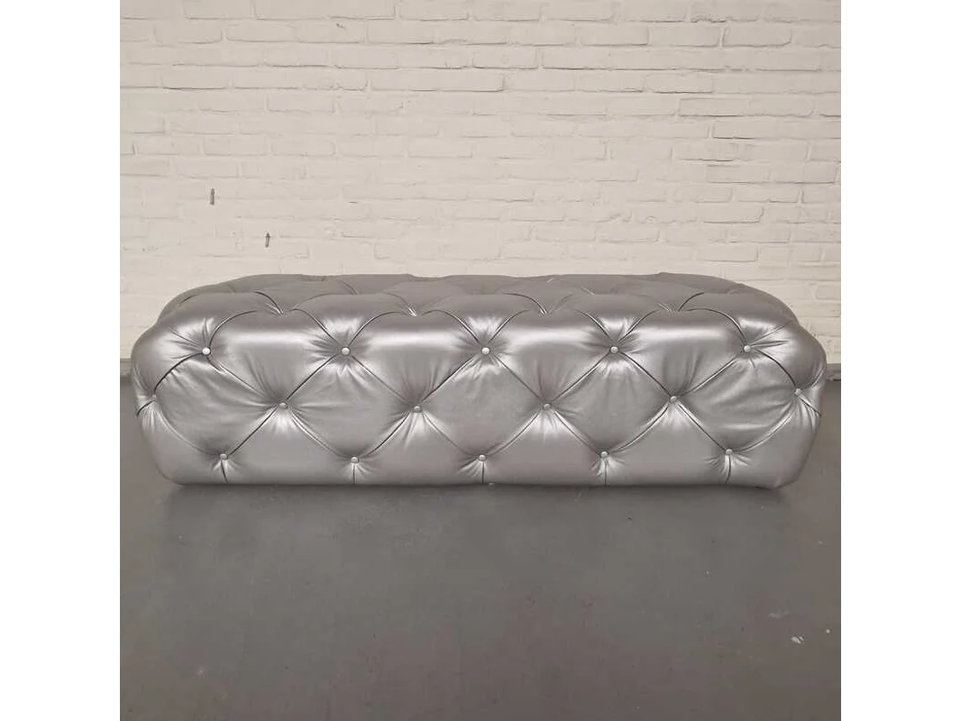 Merk: Chesterfield Product: Hocker Kleur: zilver Materiaal: leer Afmeting: 45x152x50 Conditie: nieuw Specificaties: Afmetingen: Breedte: 152 cm Hoogte: 45 cm Diepte: 50 cm