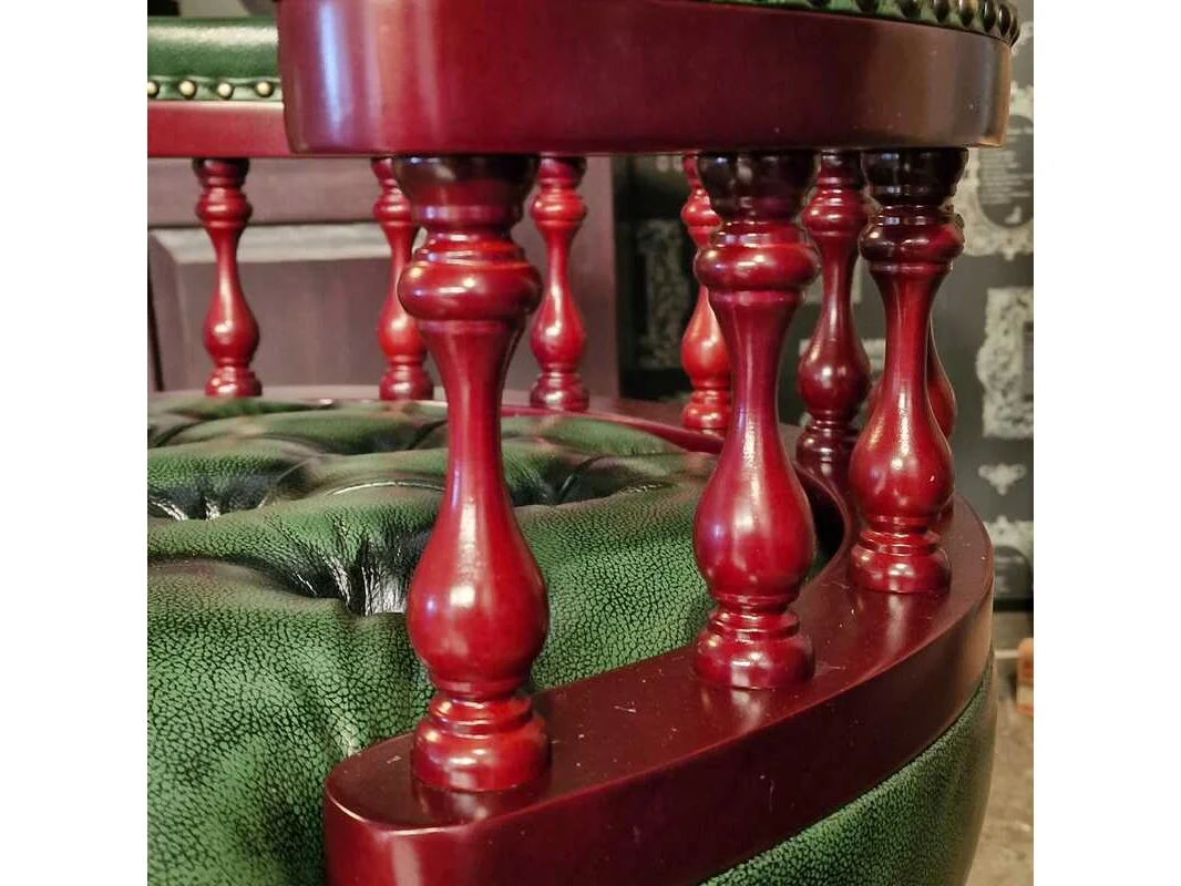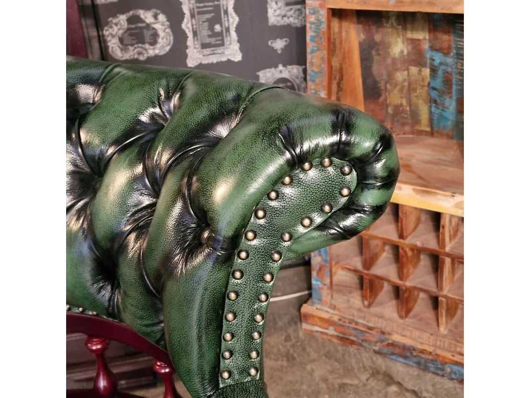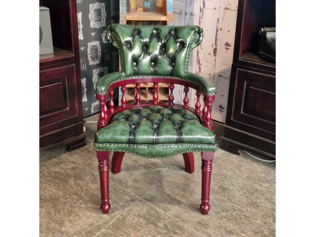 Merk: Chesterfield Product: Eetkamerstoel Kleur: groen Materiaal: leer Afmeting: 89x62x63 Conditie: nieuw Specificaties: Afmetingen: Breedte: 62 cm Hoogte: 89 cm Diepte: 63 cm Zitdiepte: 45 cm Zithoogte: 49 cm