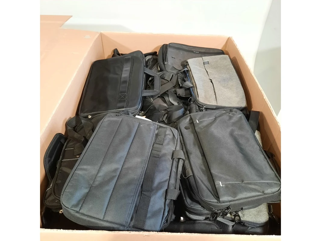 Product: Partij laptoptassen Afmeting: Diverse maten Conditie: gebruikt Specificaties: Bestaande uit diverse laptoptassen in verschillende maten. Technische staat en compleetheid onbekend. Exclusief pallets.