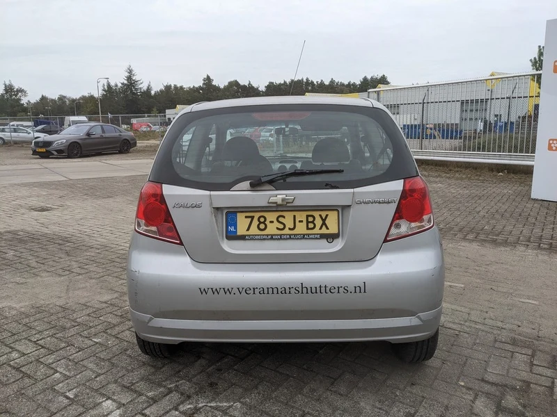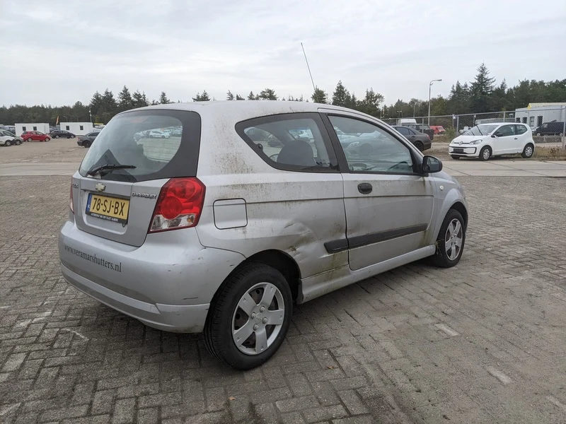 Merk: Chevrolet Product: Personenauto BouwJaar: 2006 Conditie: gebruikt Specificaties: Kenteken: 78-SJ-BX Eerste toelating nationaal: 20-01-2006 APK vervaldatum: 30-12-2023 Brandstof: Benzine Transmissie: Handmatig Afgelezen tellerstand: Onbekend, geen sleutel aanwezig Aantal sleutels: 0 VIN nummer: KL1SF08TJ6B554034 Start: Nee, geen sleutel aanwezig Opties en uitrusting Elektrisch verstelbare ramen Radio / media systeem Waargenomen gebreken Krassen / beschadigingen rondom Groene aanslag Banden zacht Band linksvoor leeg / lek