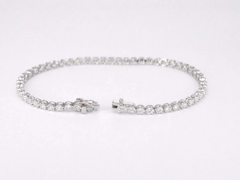 Product: Tennisarmband met 3.00 carat diamanten Specificaties: Diamant: Natuurlijk Slijpvorm: Briljant geslepen Gewicht (carat): 3.00 carat Kleur: F-G Zuiverheid: VS Slijpkwaliteit: Zeer mooi Juweel: Armband Gewicht: 5.8 gram Afmetingen/lengte: 17 cm Materiaal: 18K goud (750) Conditie: Nieuw Verpakking: Luxe sieradendoos Toelichting: De kwaliteit is overgenomen van het rapport behorend bij item. De waardebepaling is een beoordeling van een gecertificeerde diamantair, gebaseerd op consumentenprijzen. Consumentenprijs: € 17.063,-