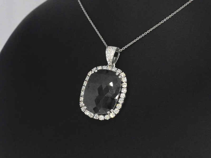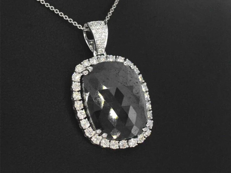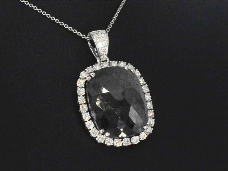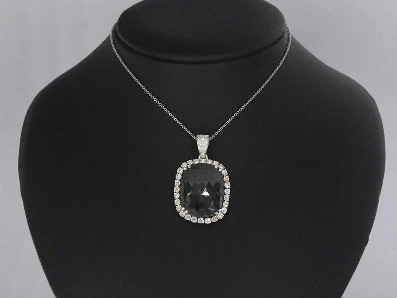 Product: Witgouden hanger met witte en zwarte diamanten Specificaties: Diamant: Natuurlijk Aantal: 1 stuk Slijpvorm: Rond ovaal gefacetteerd Gewicht (carat): 17.19 carat Kleur: Zwart (enhanced) Zuiverheid: Opaak Slijpkwaliteit: Zeer mooi Diamant (secundair): Diamanten Aantal diamanten: 44 stuks Slijpvorm: Rond geslepen Gewicht (carat): 1.00 carat Kleur: F-G Zuiverheid: VS-SI Juweel: Hanger (excl. ketting) Gewicht: 6 gram Materiaal: 14k goud (585) Conditie: Nieuw Verpakking: Luxe sieradendoos Toelichting: De kwaliteit is overgenomen van het rapport behorend bij item. De waardebepaling is een beoordeling van een gecertificeerde diamantair, gebaseerd op consumentenprijzen. Extra informatie: Aan de oppervlakte van deze diamanten zitten nog natuurlijke kenmerken van ruwe diamant, dit kan voor een leek lijken op beschadigingen Consumentenprijs: € 13.850,-