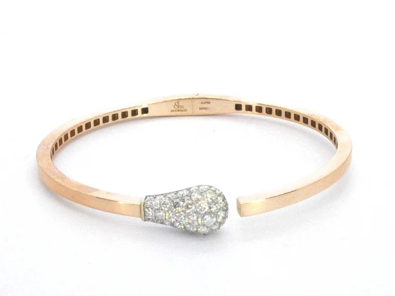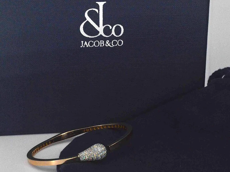 Product: Jacob & Co - Match - Rosegouden design armband met natuurlijke diamanten Specificaties: Diamant: Natuurlijk Slijpvorm: Briljant geslepen Gewicht (carat): 1.09 carat Kleur: F Zuiverheid: VVS Juweel: Armband Merk: Jacob & Co Model: Match Serienummer: 92353XXX Gewicht: 11 gram Materiaal: 18K goud (750) Conditie: Zo goed als nieuw Verpakking: Originele sieradendoos Toelichting: De kwaliteit is overgenomen van het rapport behorend bij item. De waardebepaling is een beoordeling van een gecertificeerde diamantair, gebaseerd op consumentenprijzen. Consumentenprijs: € 12.000,-