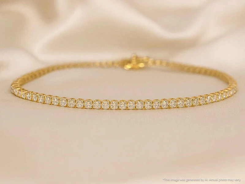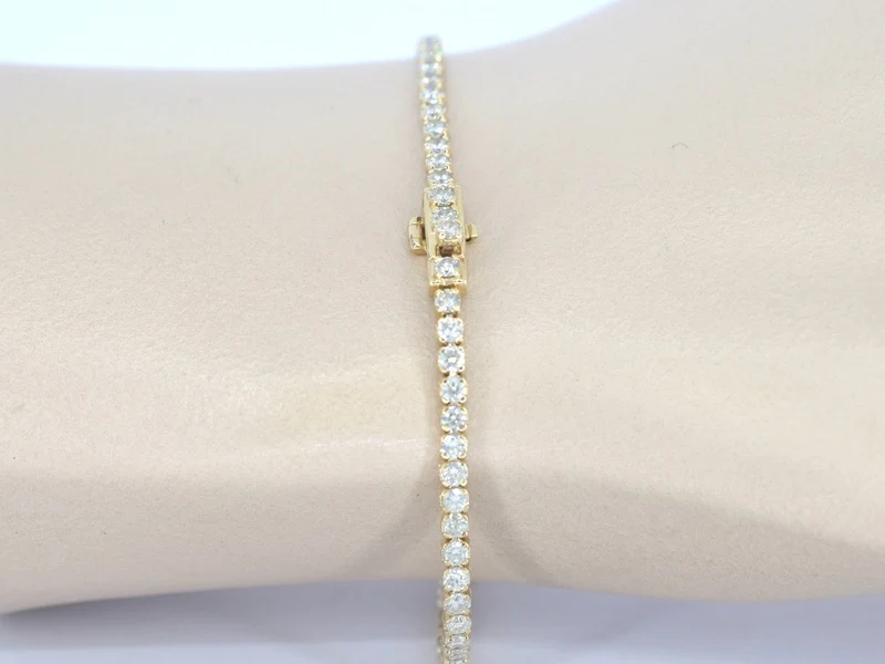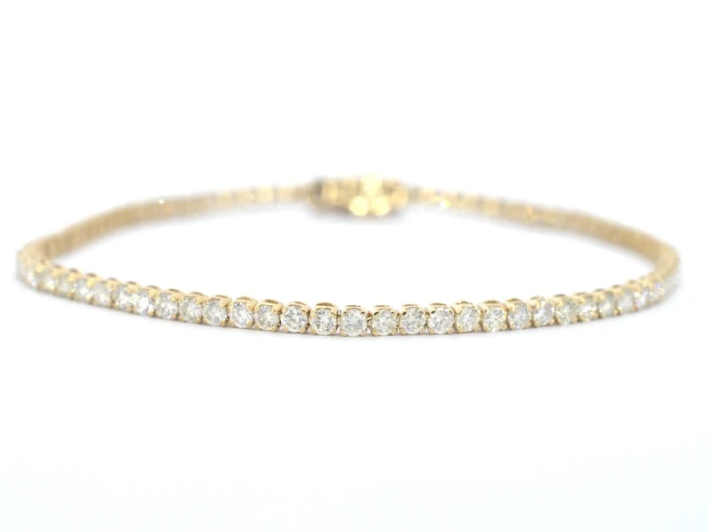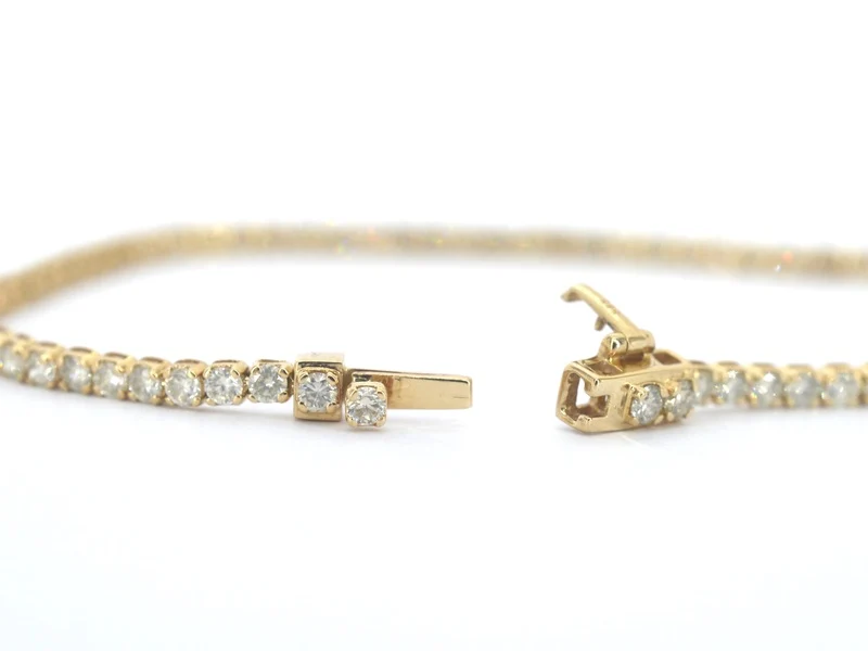 Product: Gouden tennisarmband met diamanten 3.00 carat Specificaties: Diamant: Natuurlijk Slijpvorm: Briljant geslepen Gewicht (carat): 3.00 carat Kleur: F-G Zuiverheid: SI-P Slijpkwaliteit: Zeer mooi Juweel: Armband Gewicht: 4 gram Afmetingen/lengte: 17.5 cm Materiaal: 14 karaat (585) Conditie: Nieuw Verpakking: Luxe sieradendoos Toelichting: De kwaliteit is overgenomen van het rapport behorend bij item. De waardebepaling is een beoordeling van een gecertificeerde diamantair, gebaseerd op consumentenprijzen. Consumentenprijs: € 7.920,-