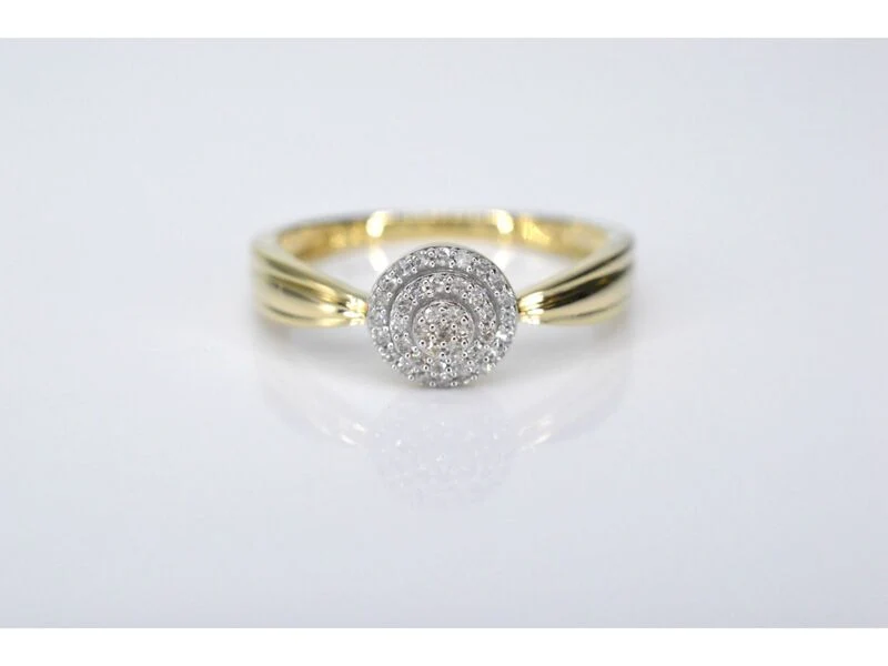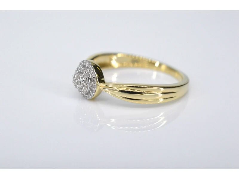 Product: Gouden entourage ring met diamanten Specificaties: Diamant: Natuurlijk Slijpvorm: Briljant en rond geslepen Gewicht (carat): 0.15 carat Kleur: F-G Zuiverheid: SI-P Slijpkwaliteit: Zeer mooi Juweel: Ring Gewicht: 2.5 gram Ringmaat (op maat gemaakt*): 54 (17.25 mm) Materiaal: 14 karaat (585) Conditie: Nieuw Verpakking: Luxe sieradendoos Toelichting: De kwaliteit is overgenomen van het rapport behorend bij item. De waardebepaling is een beoordeling van een gecertificeerde diamantair, gebaseerd op consumentenprijzen. Consumentenprijs: € 1.505,-