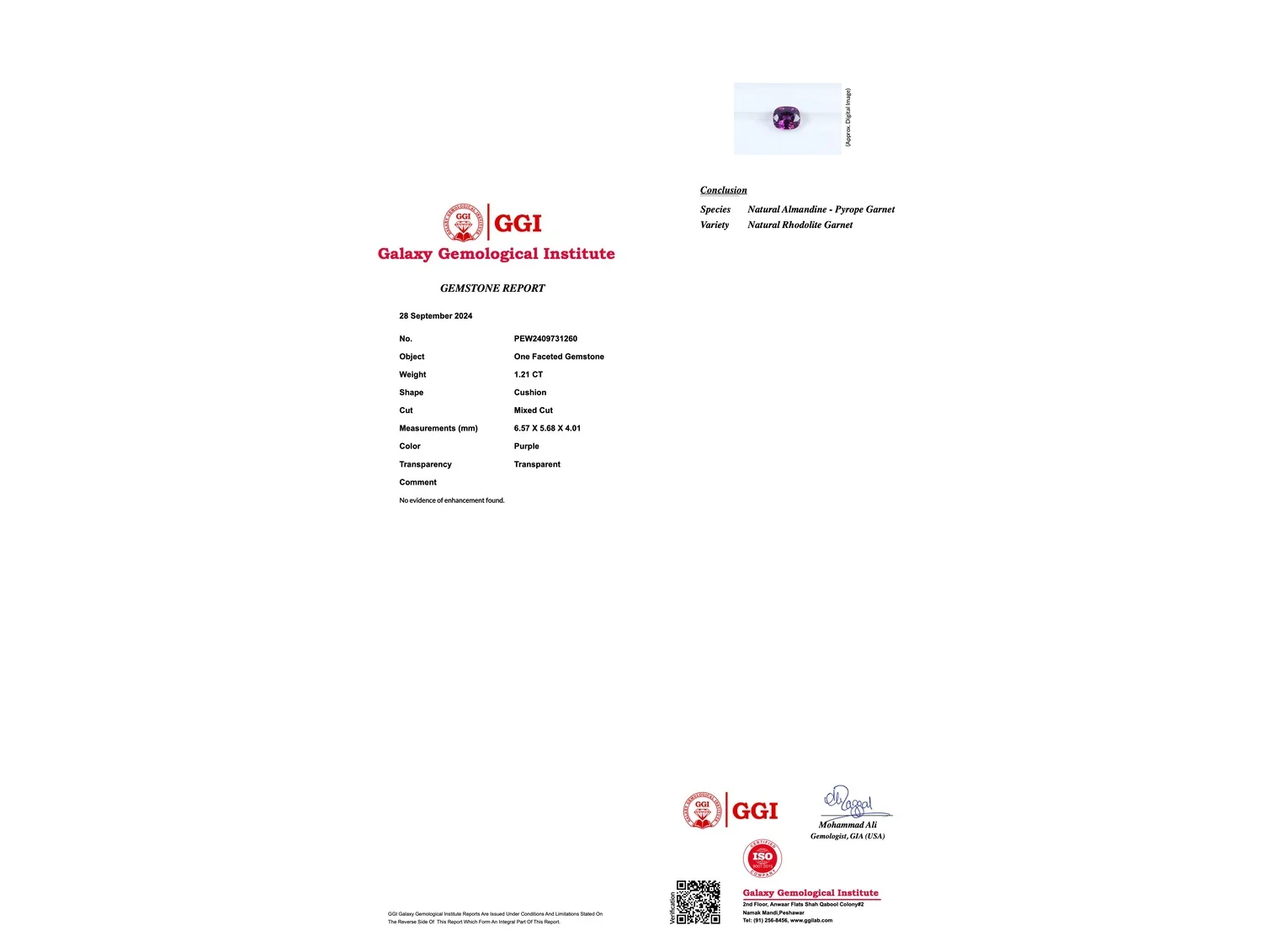 Product: Granaat - 1.21 carat natuurlijke Almandien pyroop granaat Specificaties: Edelsteen: Granaat Aantal: 1 stuk Slijpvorm: Kussenvorm geslepen Gewicht (carat): 1.21 carat Kleur: Paars Zuiverheid: Met natuurlijke insluitsels Conditie: Nieuw Verpakking: Edelsteendoos Toelichting: De kwaliteit is overgenomen van het rapport behorend bij item. De waardebepaling is een beoordeling van een gecertificeerde diamantair, gebaseerd op consumentenprijzen. Consumentenprijs: € 900,-