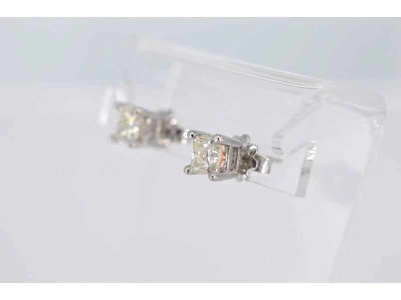 Product: Witgouden oorbellen met princess geslepen diamanten 1.47 carat Specificaties: Diamant: Natuurlijk Aantal: 2 stuks Slijpvorm: prinses geslepen Gewicht (carat): 1.47 carat Kleur: H Zuiverheid: VS2 Slijpkwaliteit: Exceptioneel Juweel: Oorbellen Gewicht: 1 gram Materiaal: 18K goud (750) Conditie: Nieuw Verpakking: Luxe sieradendoos Toelichting: De kwaliteit is overgenomen van het rapport behorend bij item. De waardebepaling is een beoordeling van een gecertificeerde diamantair, gebaseerd op consumentenprijzen. Consumentenprijs: € 12.000,-