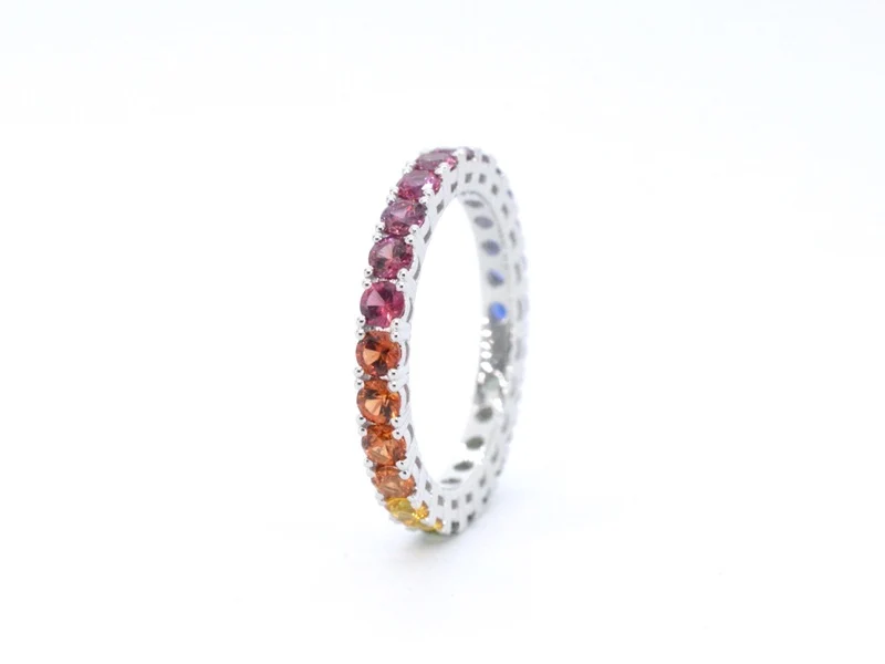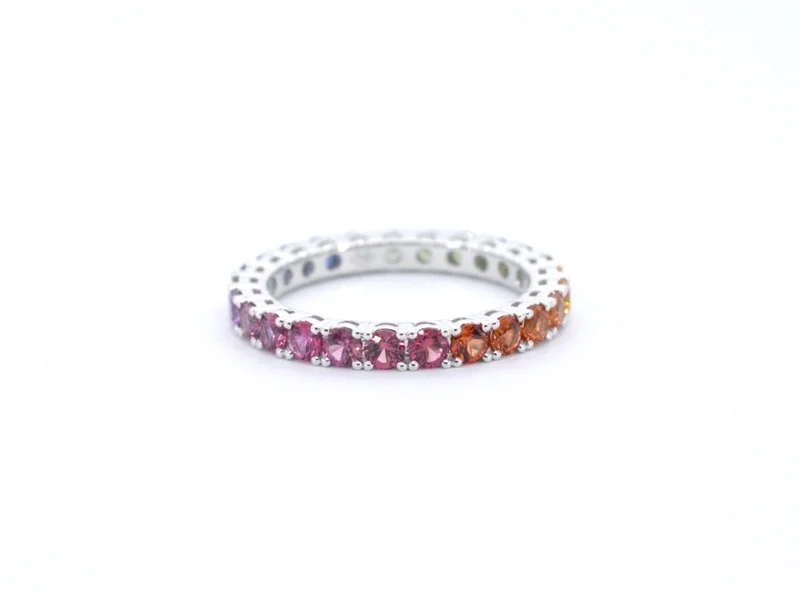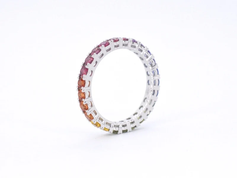Product: Witgouden ring met multicolour saffieren Specificaties: Edelsteen: Saffieren Aantal: 25 stuks Slijpvorm: Briljant geslepen Gewicht (carat): 2.00 carat Kleur: Multicolour Slijpkwaliteit: Very good Juweel: Ring Gewicht: 2.5 gram Ringmaat (op maat gemaakt*): 53 (17 mm) Materiaal: 18K goud (750) Conditie: Nieuw Verpakking: Luxe sieradendoos Toelichting: De kwaliteit is overgenomen van het rapport behorend bij item. De waardebepaling is een beoordeling van een gecertificeerde diamantair, gebaseerd op consumentenprijzen. Consumentenprijs: € 3.675,-