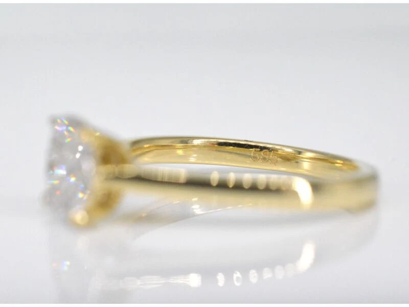 Product: Gouden ring met diamant Specificaties: Diamant: Natuurlijk Slijpvorm: Briljant geslepen Gewicht (carat): 0.46 carat Kleur: F-G Zuiverheid: SI-P Slijpkwaliteit: Zeer mooi Juweel: Ring Gewicht: 2.8 gram Ringmaat (op maat gemaakt*): 54 (17.25 mm) Materiaal: 14 karaat (585) Conditie: Nieuw Verpakking: Luxe sieradendoos Toelichting: De kwaliteit is overgenomen van het rapport behorend bij item. De waardebepaling is een beoordeling van een gecertificeerde diamantair, gebaseerd op consumentenprijzen. Consumentenprijs: € 2.468,-