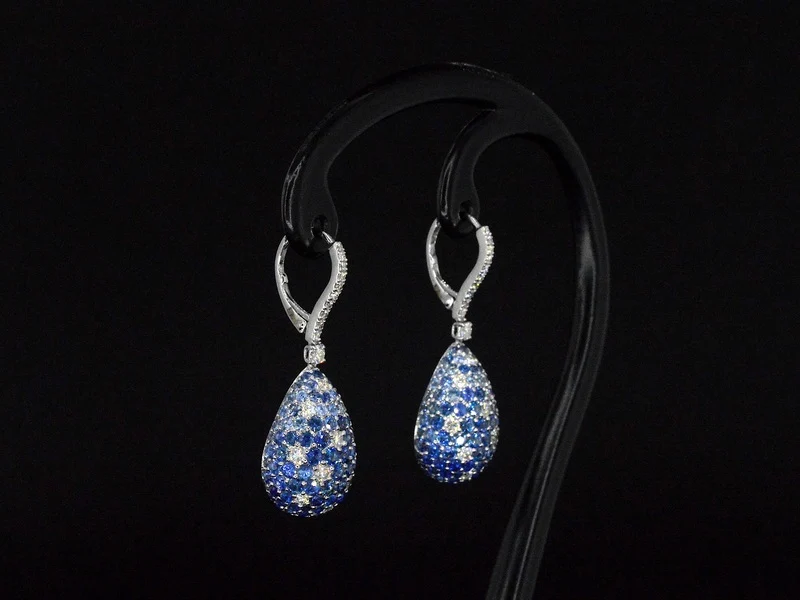Product: Oorhangers van 18 carats goud met diamanten van hoge kwaliteit met groene en blauwe saffieren Specificaties: Diamant: Natuurlijk Aantal: 42 stuks Slijpvorm: Briljant geslepen Gewicht (carat): 1.00 carat Kleur: D-E Zuiverheid: VS Slijpkwaliteit: Zeer mooi Edelsteen: Saffieren Aantal: 200 stuks Slijpvorm: Briljant geslepen Gewicht (carat): 6.00 carat Kleur: Blauw Zuiverheid: Met natuurlijke insluitsels Juweel: Oorbellen Gewicht: 9 gram Afmetingen/lengte: 3.6 x 1.2 cm Materiaal: 18K goud (750) Conditie: Nieuw Verpakking: Luxe sieradendoos Toelichting: De kwaliteit is overgenomen van het rapport behorend bij item. De waardebepaling is een beoordeling van een gecertificeerde diamantair, gebaseerd op consumentenprijzen. Consumentenprijs: € 22.400,-