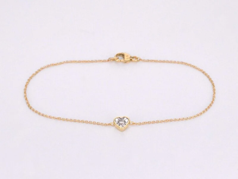 Product: Gouden armband met diamanten hartje 0.10 carat Specificaties: Diamant: Natuurlijk Slijpvorm: Briljant geslepen Gewicht (carat): 0.10 carat Kleur: F-G Zuiverheid: SI-P Slijpkwaliteit: Zeer mooi Juweel: Armband Gewicht: 1.2 gram Afmetingen/lengte: 18 cm Materiaal: 14 karaat (585) Conditie: Nieuw Verpakking: Luxe sieradendoos Toelichting: De kwaliteit is overgenomen van het rapport behorend bij item. De waardebepaling is een beoordeling van een gecertificeerde diamantair, gebaseerd op consumentenprijzen. Consumentenprijs: € 1.085,-