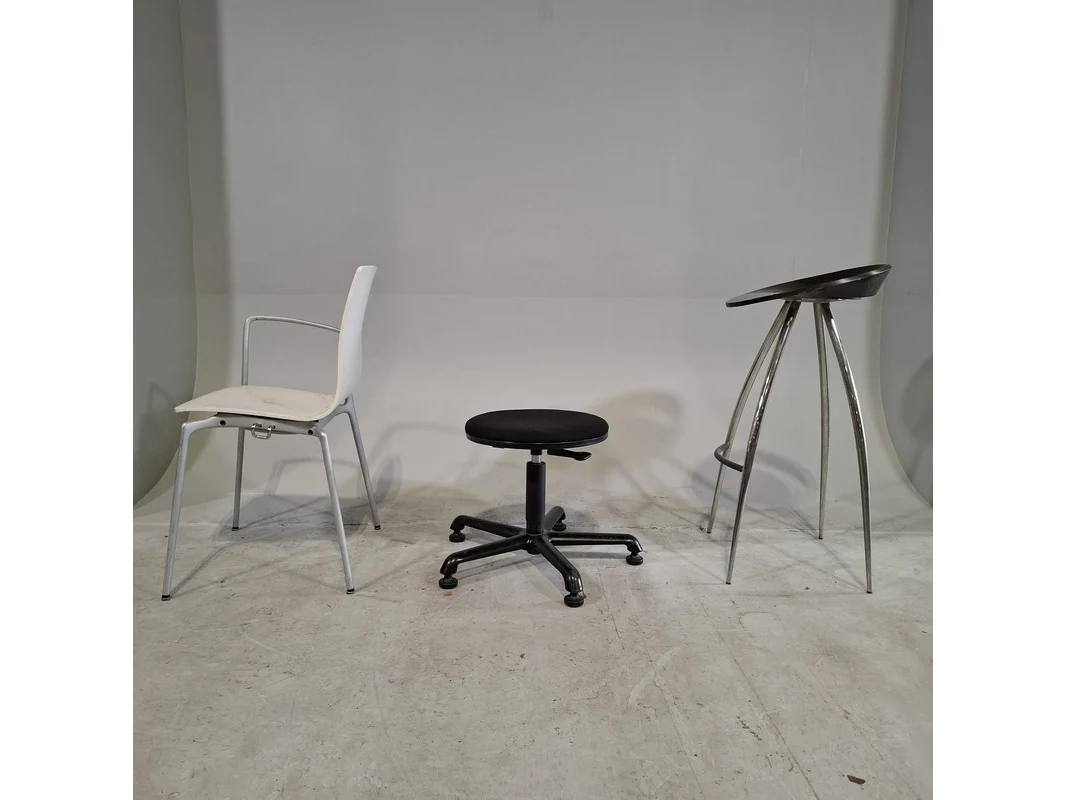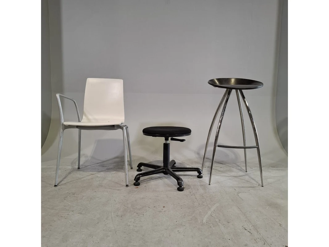 Merk: o.a. Drabert, Lyra Product: Partij stoelen en krukken Conditie: gebruikt Specificaties: Diverse stoelen defect. Diverse gebruikssporen en beschadigingen.