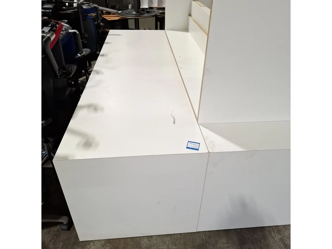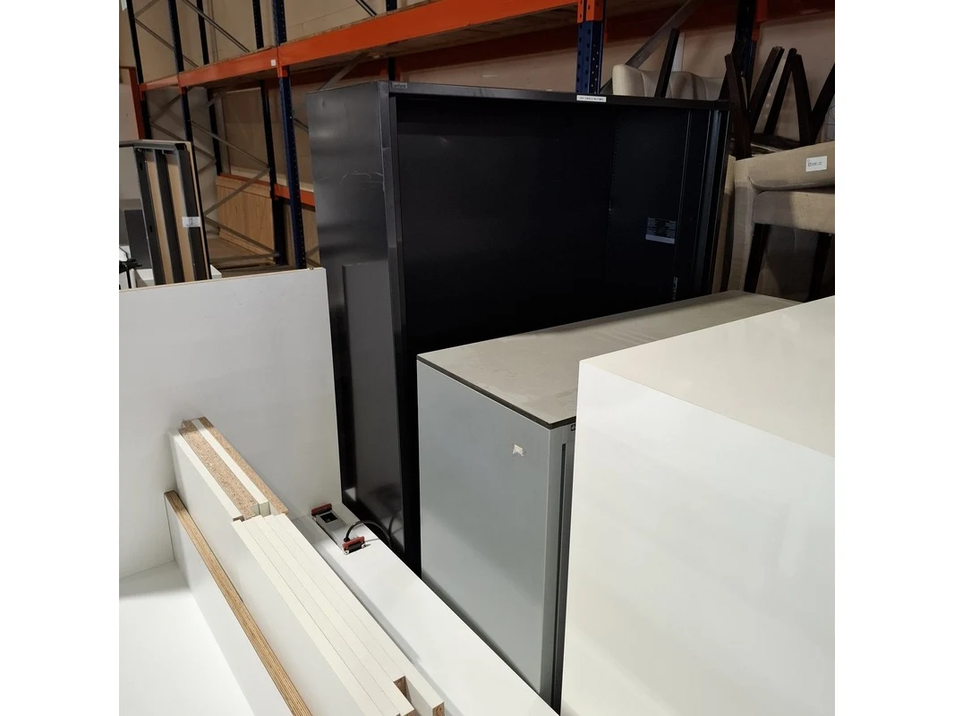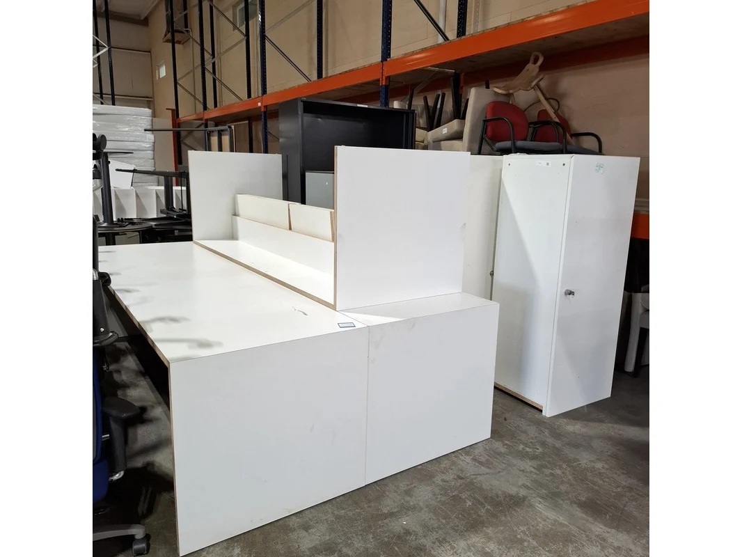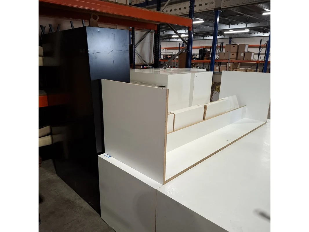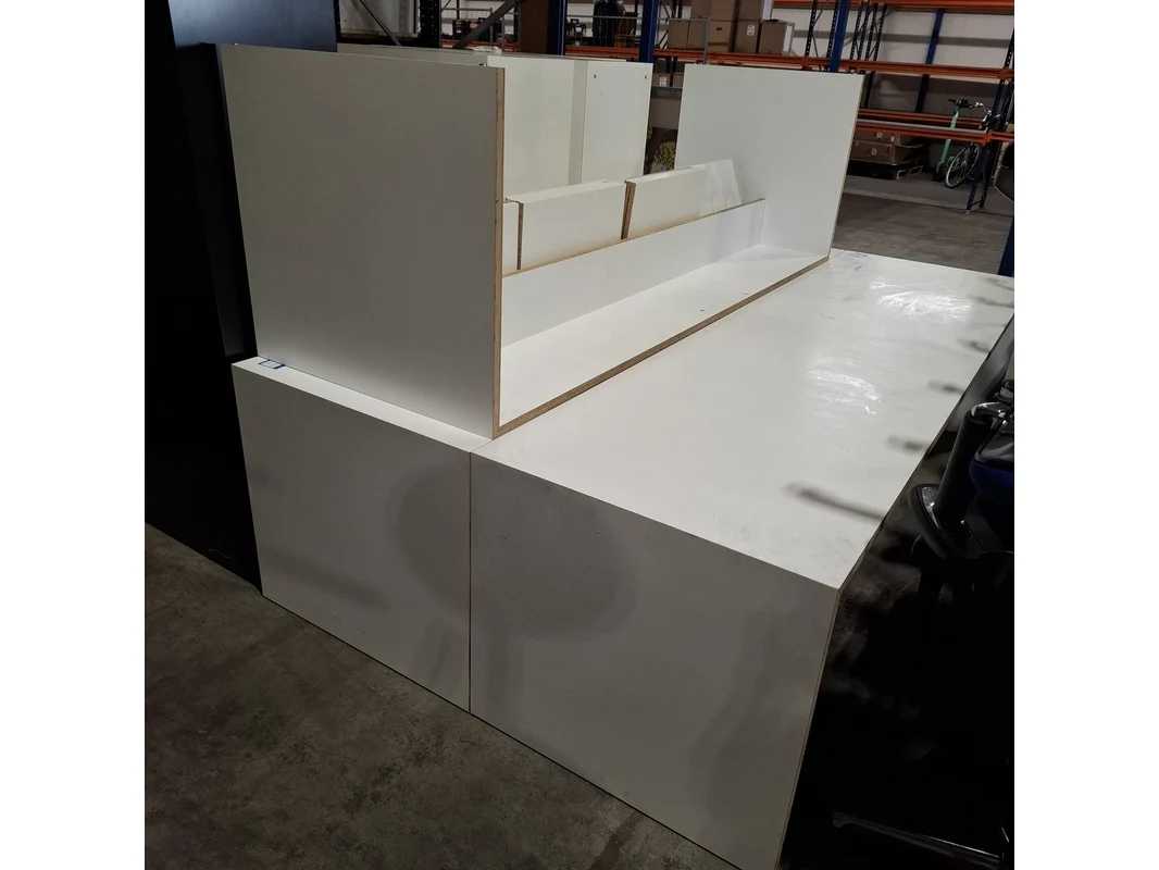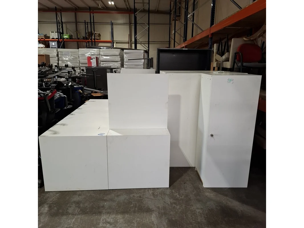 Product: Partij diverse bedrijfsinventaris Conditie: gebruikt Specificaties: Bestaande uit: 2x vergadertafel lxbxh ca. 275x80x75 cm. 1x vergadertafel lxbxh ca. 240x80x75 cm. 2x legkast hxbxd ca. 148x120x50 cm. 1x legkast hxbxd ca. 148x59x50 cm. 1x jaloeziekast hxbxd ca. 193x120x45 cm. 1x jaloeziekat hxbxd ca. 137x120x45 cm. Heeft diverse beschadigingen en gebruikssporen.