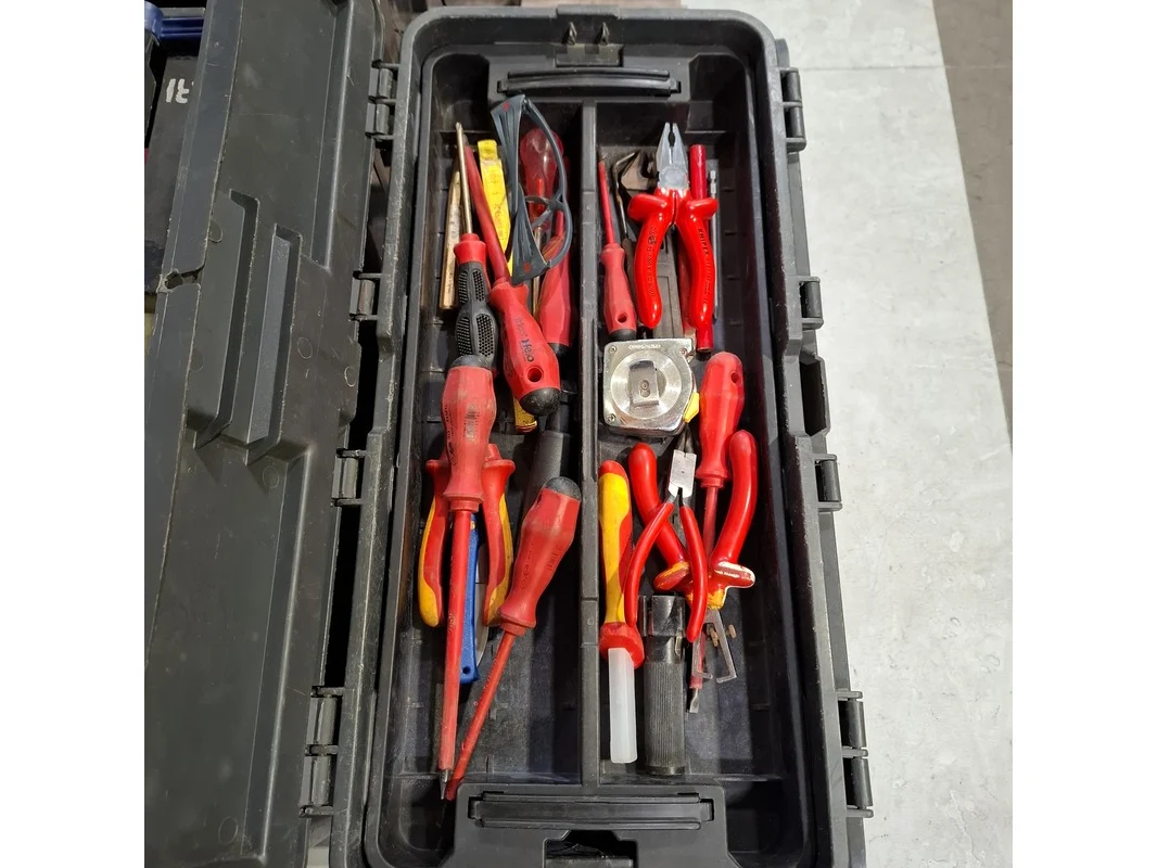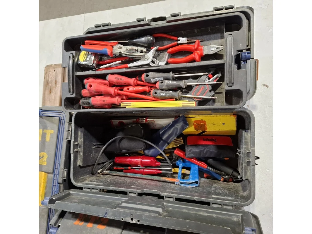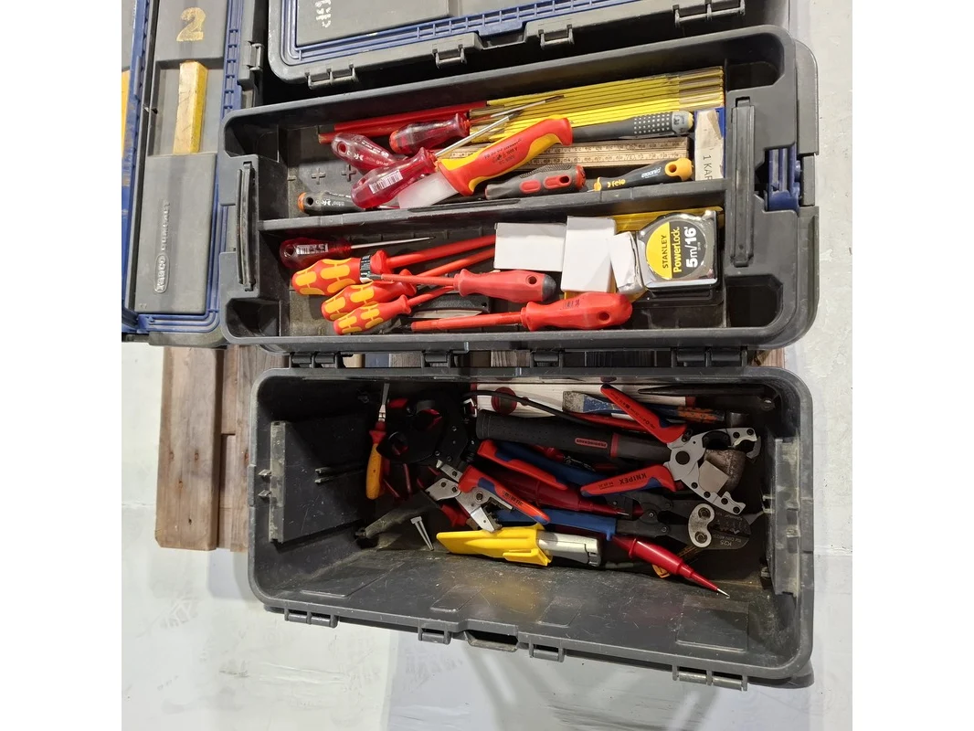 Merk: o.a. Fluke, Stanley Product: Gereedschapskoffer met inhoud Conditie: gebruikt Specificaties: Bestaande uit o.a. Schroevendraaiers, multimeter, waterpassen, Stanley messen, kabelstripper etc. Technische staat en compleetheid onbekend. Exclusief pallet.