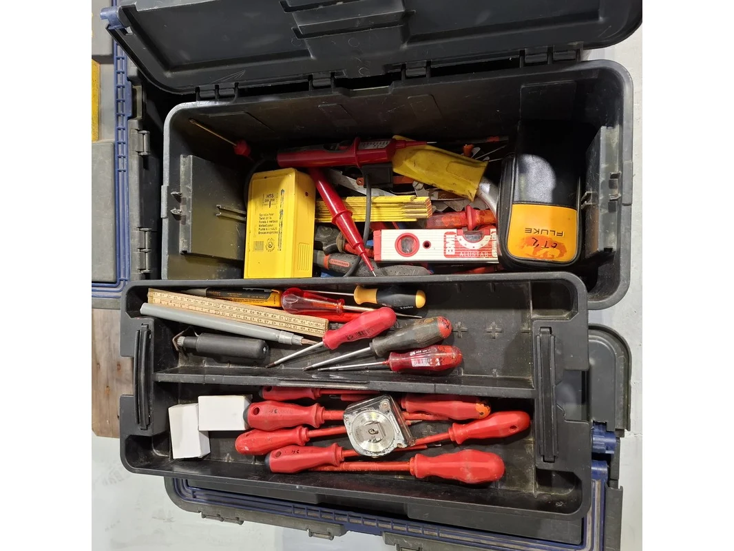 5x gereedschapskoffer met inhoud, o.a. fluke, stanley